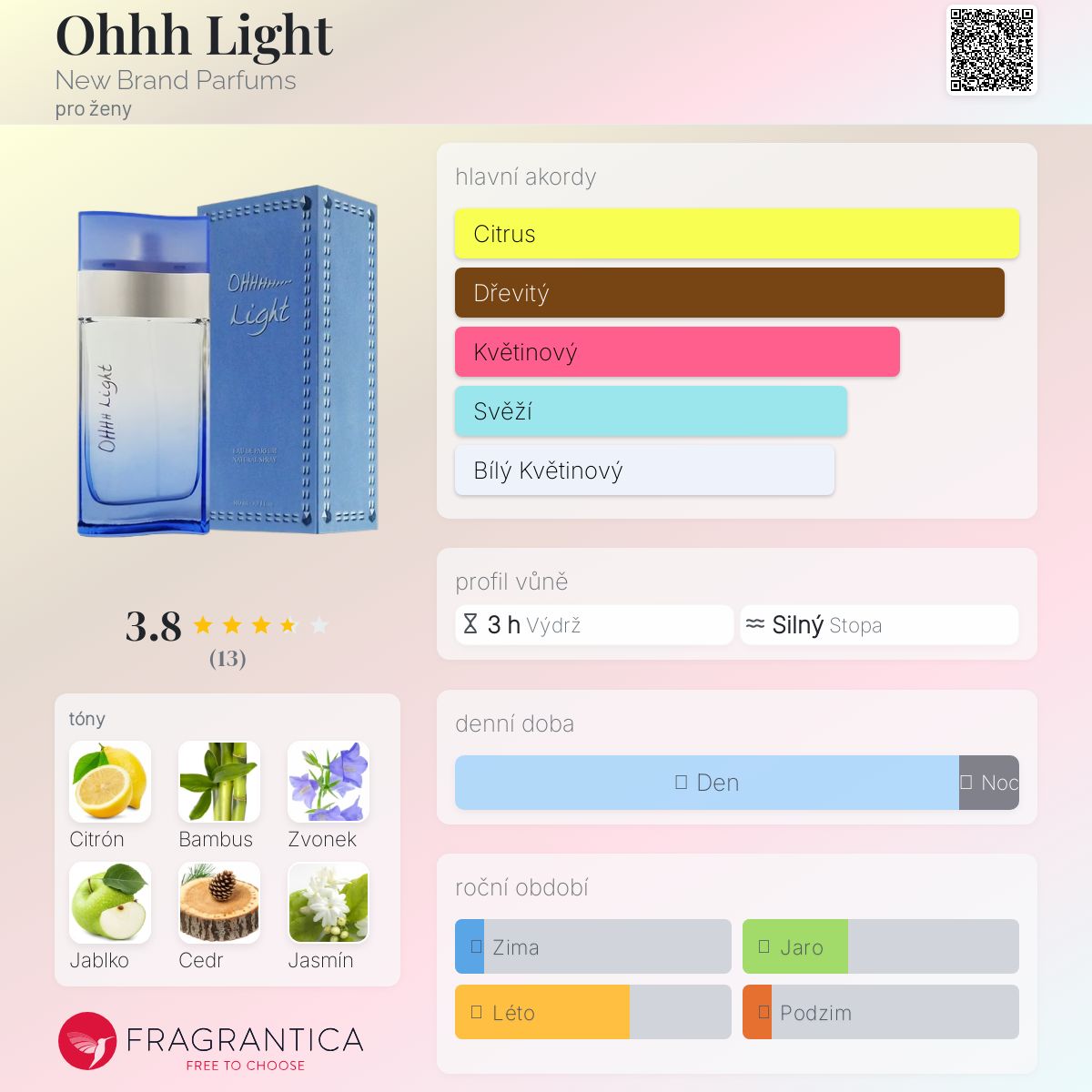 Ohhh Light podle New Brand Parfums je Floral Fruity vůně pro ženy. Ohhh Light byl/a uveden/a v roce 2018.