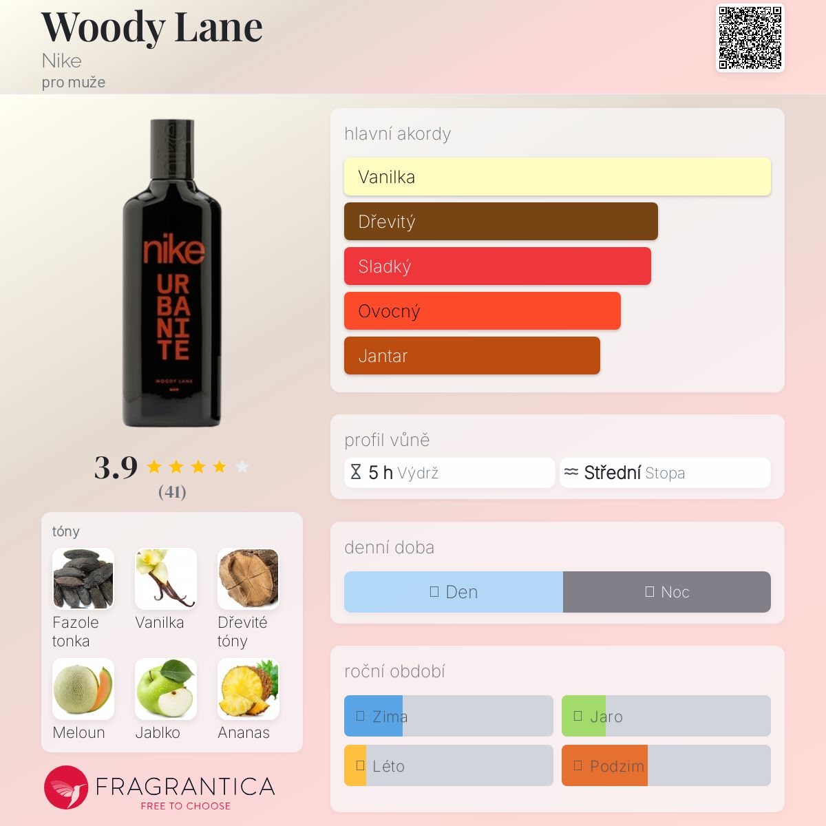 Woody Lane podle Nike je Orientální Vanilla vůně pro muže. Woody Lane byl/a uveden/a v roce 2019. Vrchní tóny jsou Meloun, Jablko, Ananas a Bergamot; střední tón jeDřevité tóny ; základní tóny jsou Fazole tonka, Vanilka, Vetiver a Pačuli.