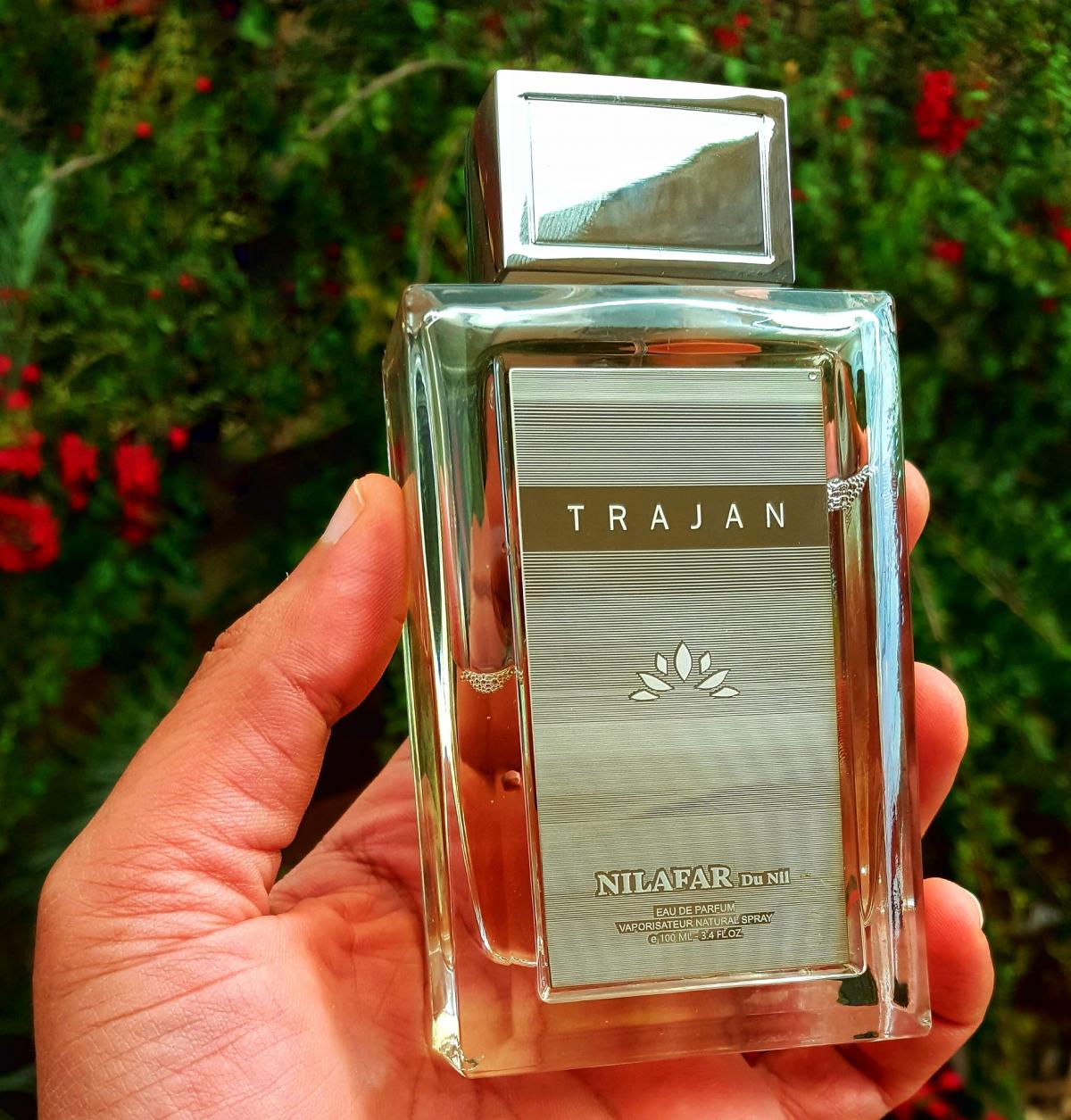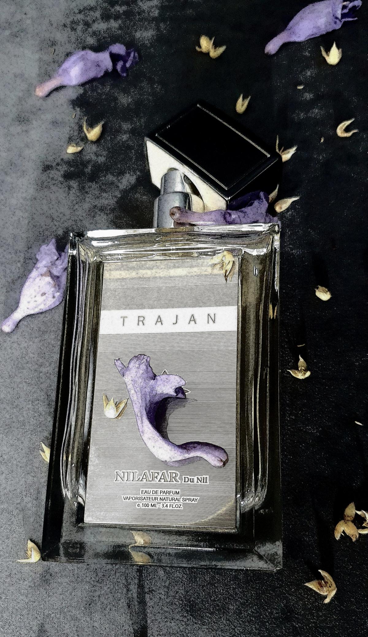 Trajan podle Nilafar du Nil je Orientální Vanilla vůně pro muže. Trajan byl/a uveden/a v roce 2019. Vrchní tóny jsou Kouř a Skořice; střední tóny jsouTřešeň, Med, Kadidlo, Meruňka, Lékořice a Šafrán ; základní tóny jsou Tabák, Vanilka, Peruánský balzám, Iso E Super a Jantar (ambra).