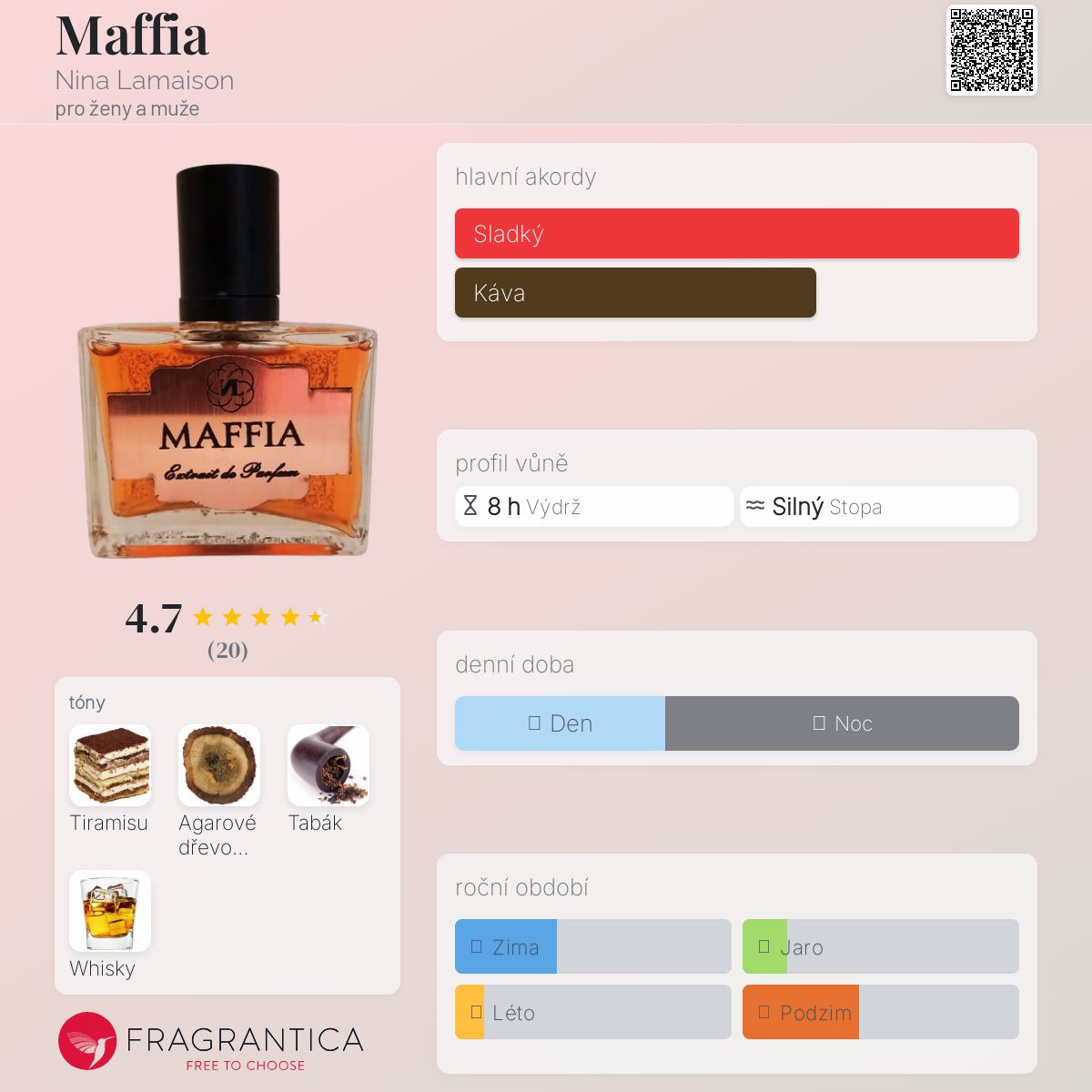 Maffia podle Nina Lamaison je vůně pro ženy a muže. Maffia byl/a uveden/a v roce 2023. "Nosem" za touto vůní je Nina Lamaison.