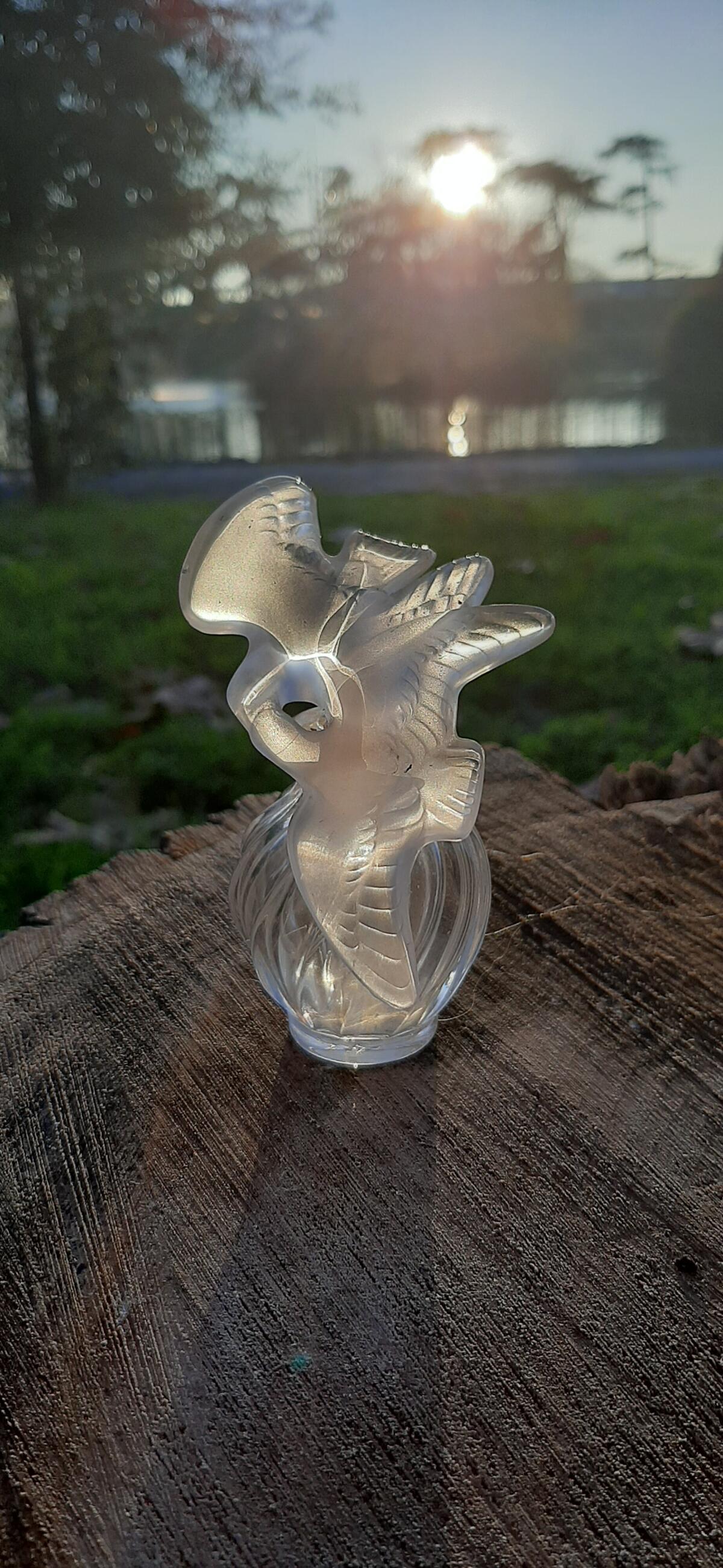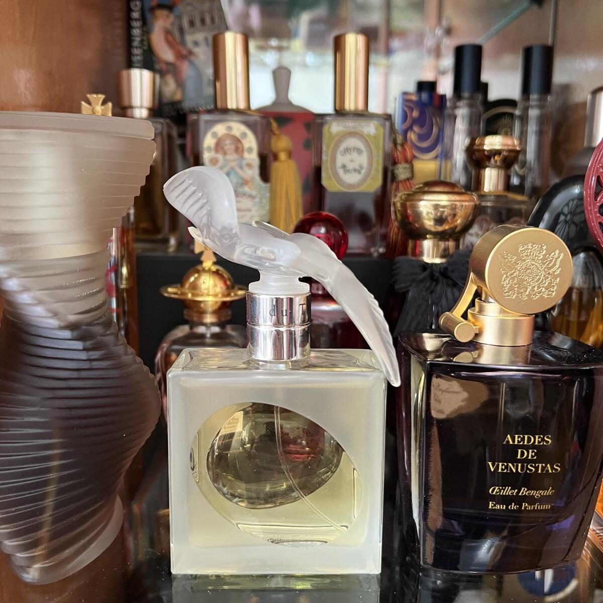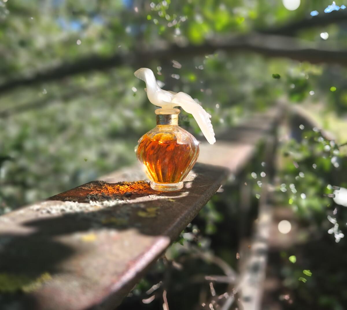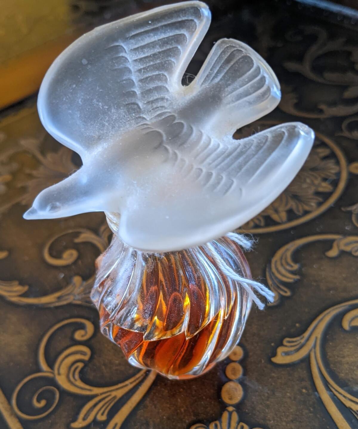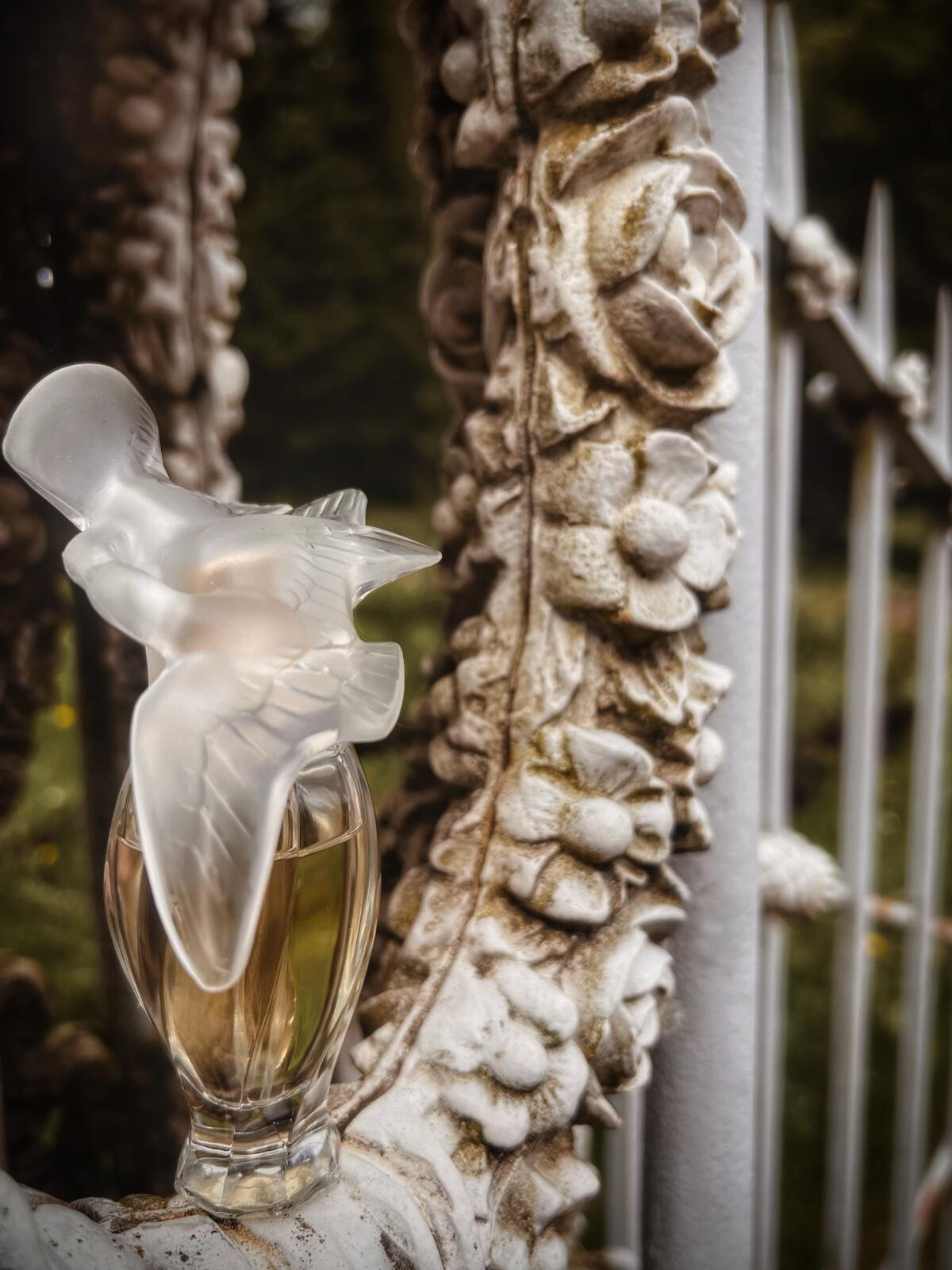 Parfém - symbol evropského obrození po druhé světové válce, nádherný flakon Lalique s propletenými holubicemi v letu...
