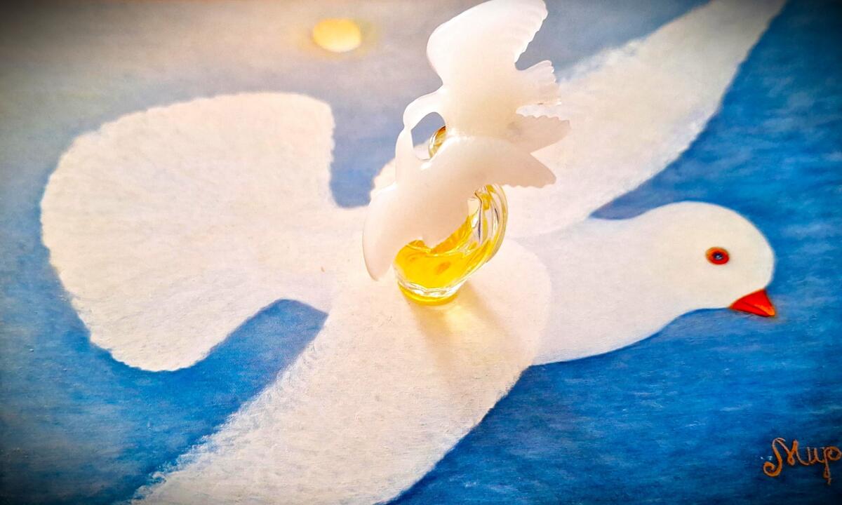 Jeden z nejkrásnějších historických parfémů vůbec. Bude to ten název, který je tak dojemný a poetický. Určitě to budou ty dvě holubice na uzávěru (nyní bohužel z plastu) symbolizující mír... Cítím z toho nevysvětlitelnou nostalgii.