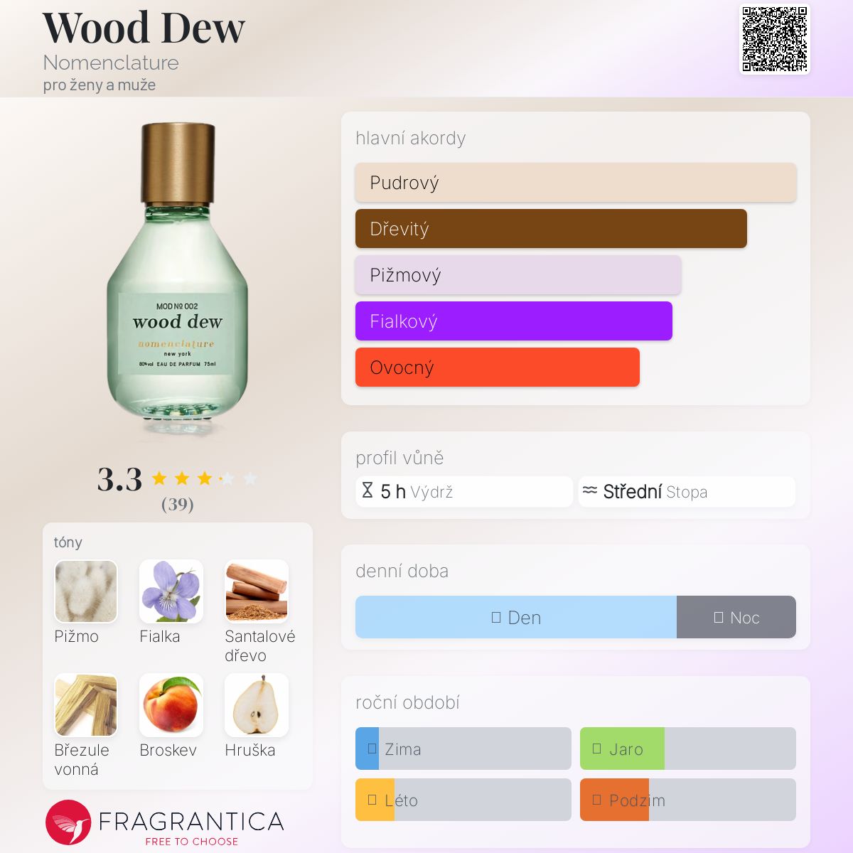 Wood Dew podle Nomenclature je Floral Woody Musk vůně pro ženy a muže. Wood Dew byl/a uveden/a v roce 2022.