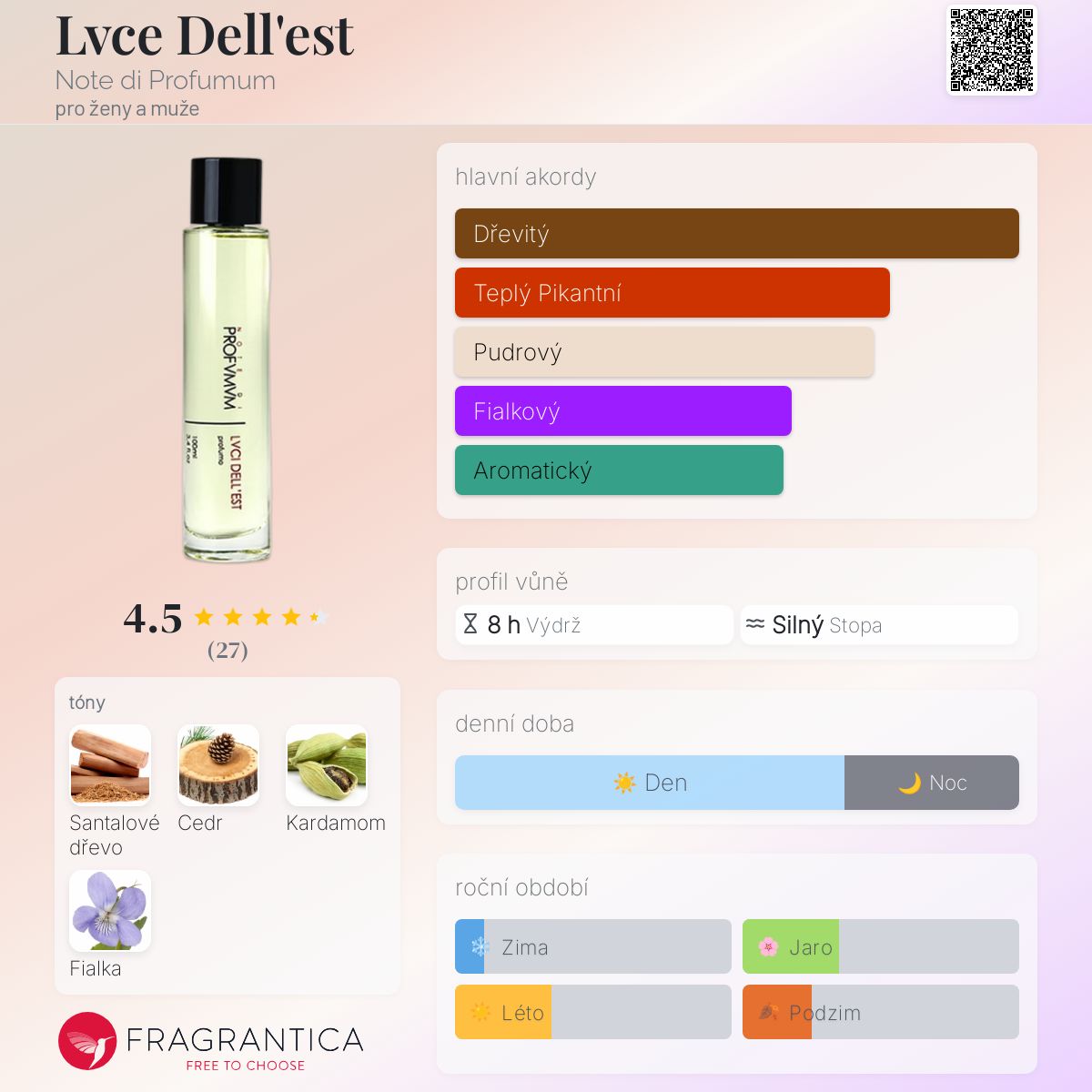Lvce Dell'est podle Note di Profumum je Woody vůně pro ženy a muže. Lvce Dell'est byl/a uveden/a v roce 2016.