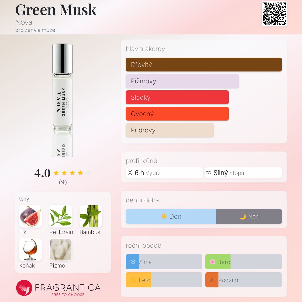 Green Musk podle Nova je Floral Woody Musk vůně pro ženy a muže. Green Musk byl/a uveden/a v roce 2016. "Nosem" za touto vůní je Julia Zangrilli.