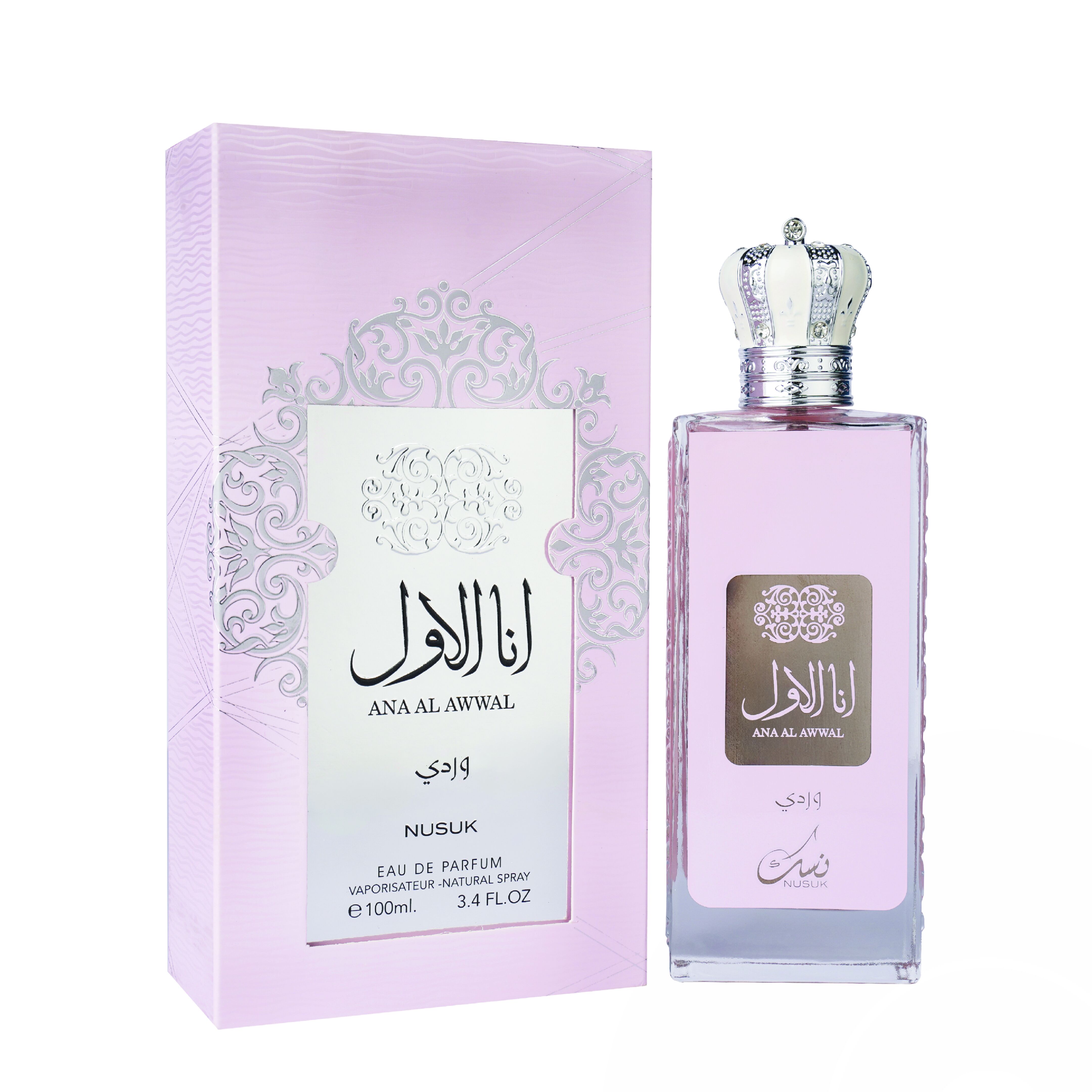Ana Al Awwai Pink podle Nusuk je Floral vůně pro ženy. Ana Al Awwai Pink byl/a uveden/a v roce 2021. Vrchní tóny jsou Bergamot, Rebarbora, Liči a Muškátový oříšek; střední tóny jsouTurecká růže, Vanilka, Pivoňka, Pižmo a Petalia ; základní tóny jsou Kašmír, Haitský vetiver, Kadidlo a Cedr.