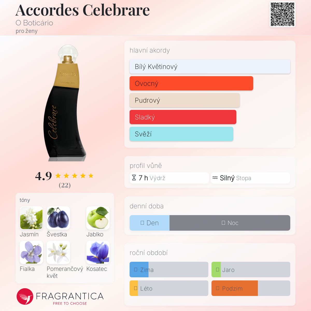 Accordes Celebrare podle O Boticário je Floral Fruity vůně pro ženy. Accordes Celebrare byl/a uveden/a v roce 2009. "Nosem" za touto vůní je Verônica Casanova. Vrchní tóny jsou Švestka, Jablko, Fialka, Kosatec, Citrón a Růžový pepř; střední tóny jsouJasmín, Pomerančový květ, Konvalinka a Ylang-Ylang ; základní tóny jsou Santalové dřevo, Vanilka, Fazole tonka, Pižmo a Jantar (ambra).