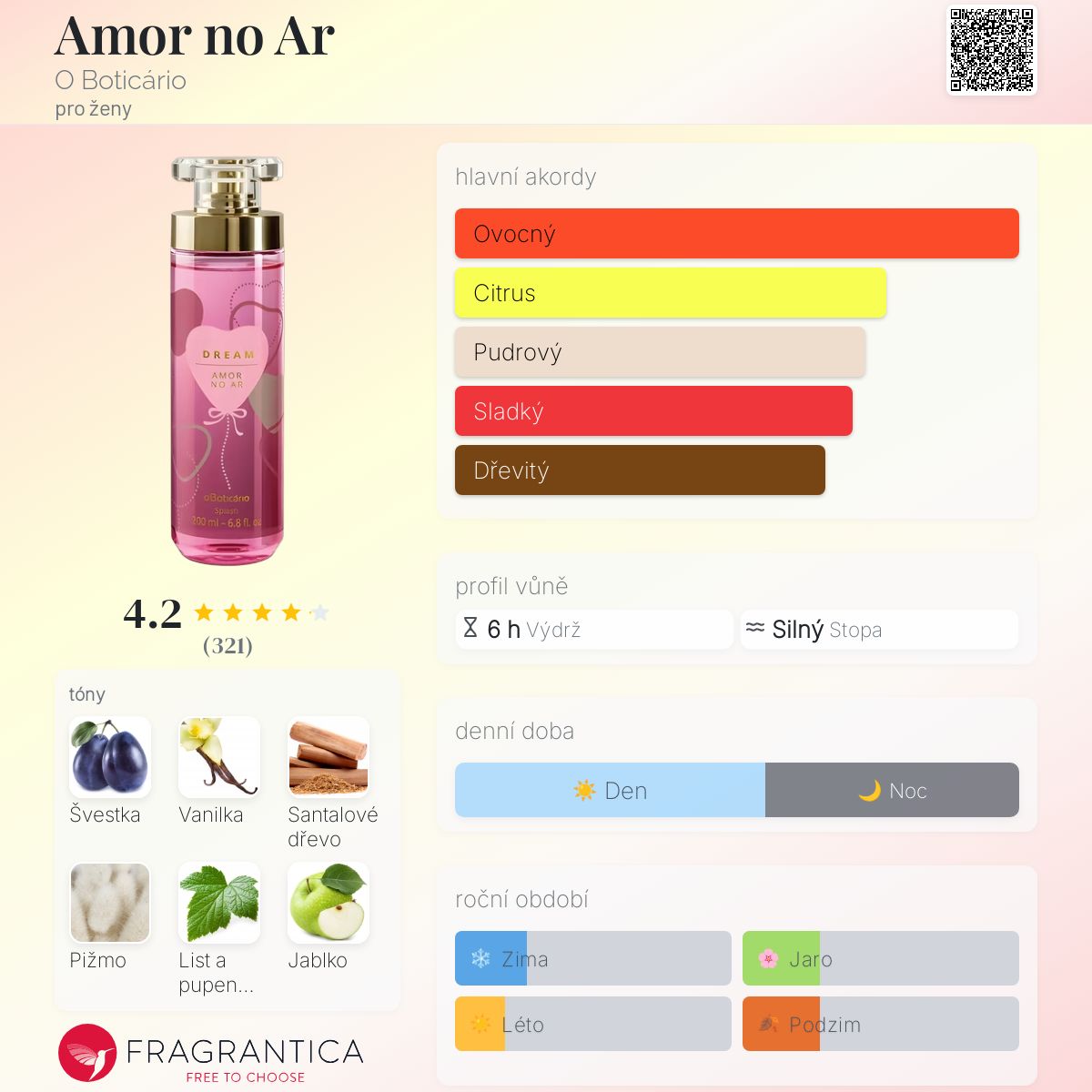 Velmi připomíná vůni jablek lásky, s dřevitým podtónem, u kterého jsem nedokázala rozlišit, který tón mu dodává onen dřevitý nádech. Z řady Dream mi na kůži nejlépe voní ona a vanilkové nebe. Velmi jsem ji schválila!