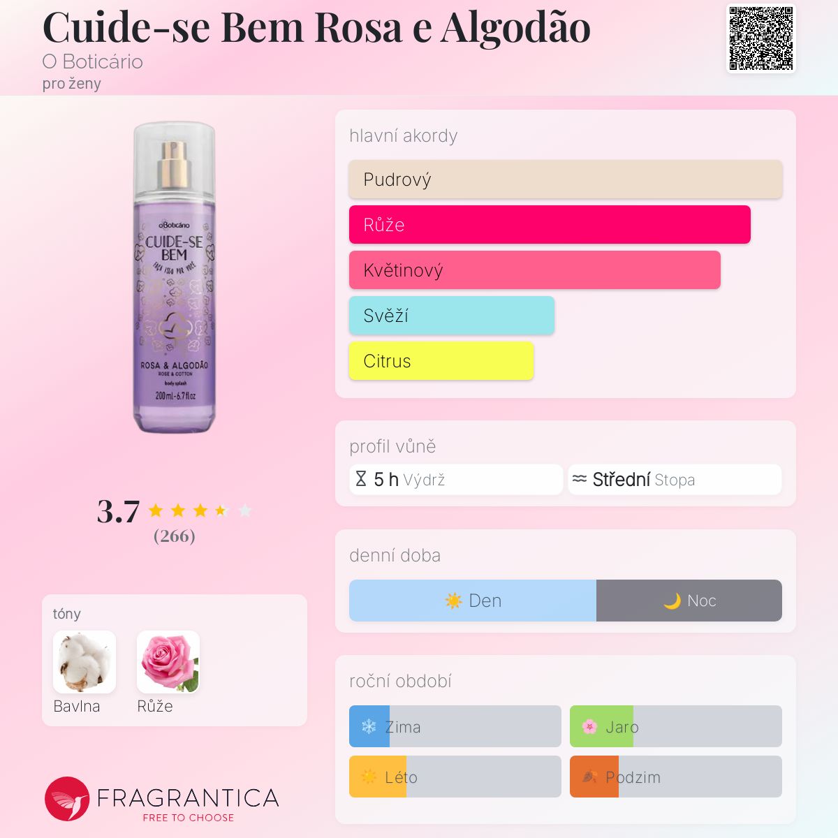 Cuide-se Bem Rosa e Algodão podle O Boticário je Floral vůně pro ženy. Cuide-se Bem Rosa e Algodão byl/a uveden/a v roce 2017.
