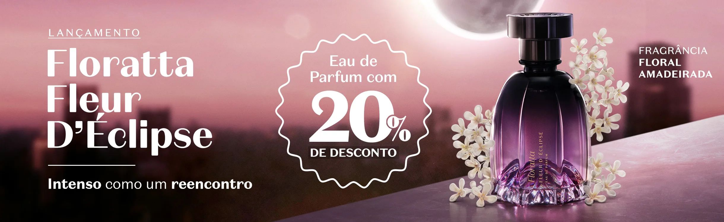 Floratta Fleur d' Éclipse podle O Boticário je Floral Woody Musk vůně pro ženy. Floratta Fleur d' Éclipse byl/a uveden/a v roce 2022. Floratta Fleur d' Éclipse byl/a vytvořen/a Carlos Benaïm a Natasha Côté. Vrchní tóny jsou Růžový pepř, Liči, Hruška, Pudink a Bergamot; střední tóny jsouTurecká růže, Magnólie, Vonokvětka a Ylang-Ylang ; základní tóny jsou Pačuli, Pižmo, Jantar (ambra) a Vetiver.