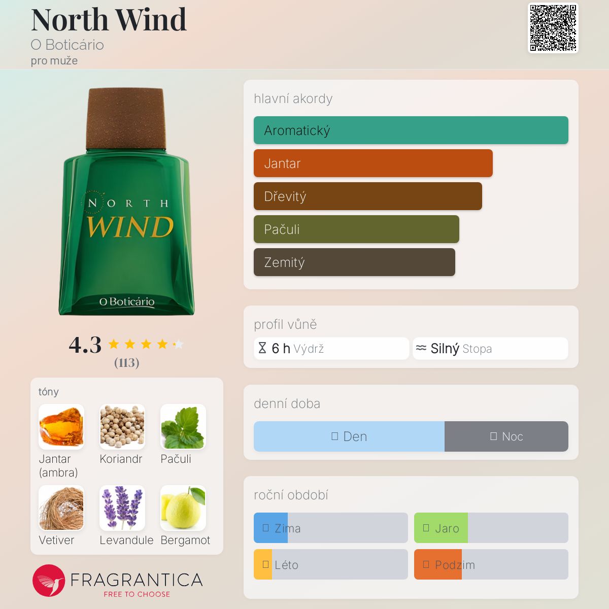 North Wind podle O Boticário je Aromatic vůně pro muže. "Nosem" za touto vůní je Antonio Amador. Vrchní tón je Bergamot ; střední tóny jsouJantar (ambra), Koriandr, Levandule a Pelargónie ; základní tóny jsou Pačuli a Vetiver.