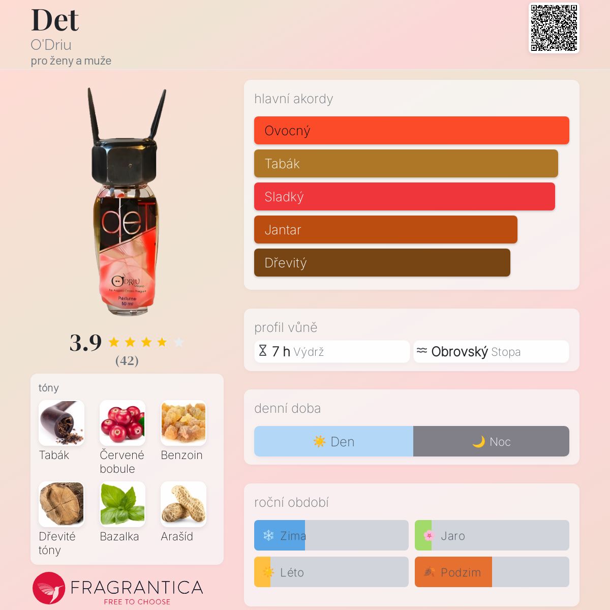 Det podle O'Driu je vůně pro ženy a muže. Det byl/a uveden/a v roce 2015. "Nosem" za touto vůní je Angelo Orazio Pregoni.