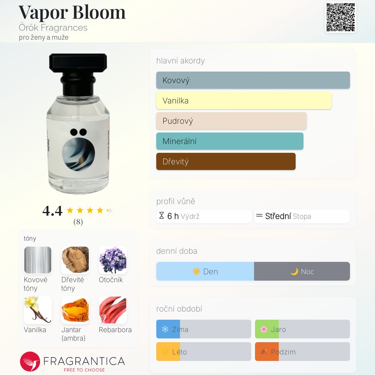 Vapor Bloom podle Örök Fragrances je Orientální vůně pro ženy a muže. Toto je nová vůně. Vapor Bloom byl/a uveden/a v roce 2024.