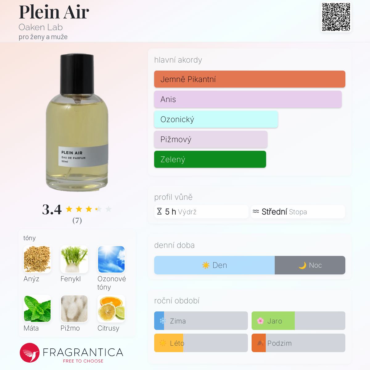 Plein Air podle Oaken Lab je Citrus Aromatic vůně pro ženy a muže. Plein Air byl/a uveden/a v roce 2018.