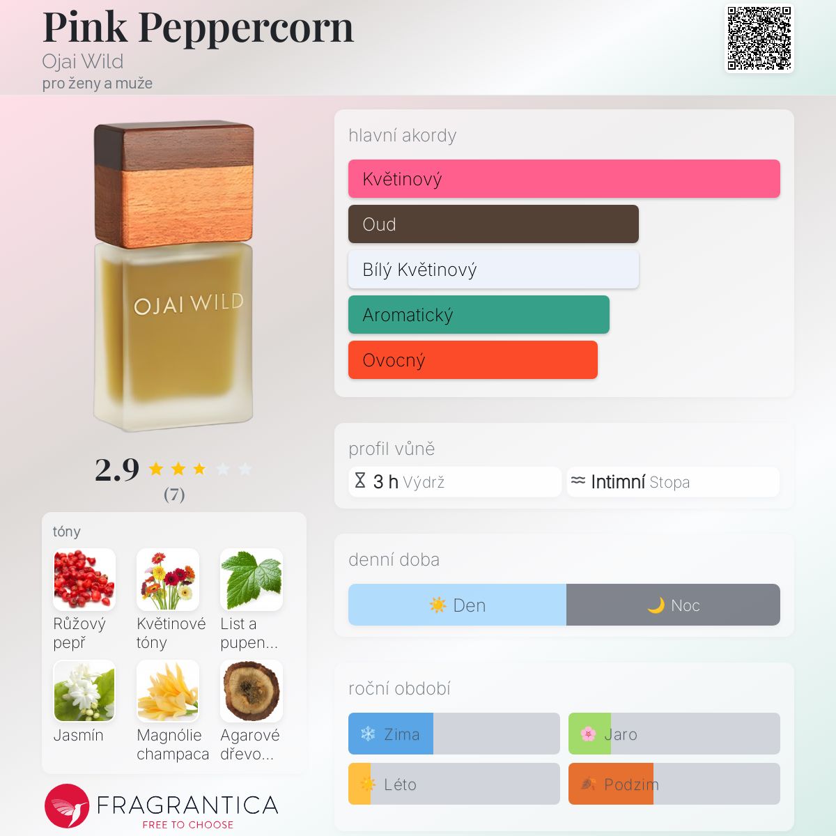 Pink Peppercorn podle Ojai Wild je Floral vůně pro ženy a muže. Pink Peppercorn byl/a uveden/a v roce 2017. "Nosem" za touto vůní je Janna Sheehan.