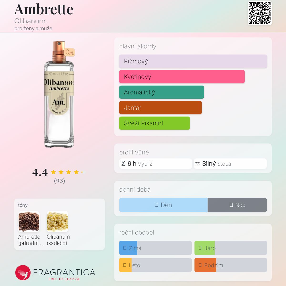 Ambrette podle Olibanum. je Floral Woody Musk vůně pro ženy a muže. Ambrette byl/a uveden/a v roce 2022.
