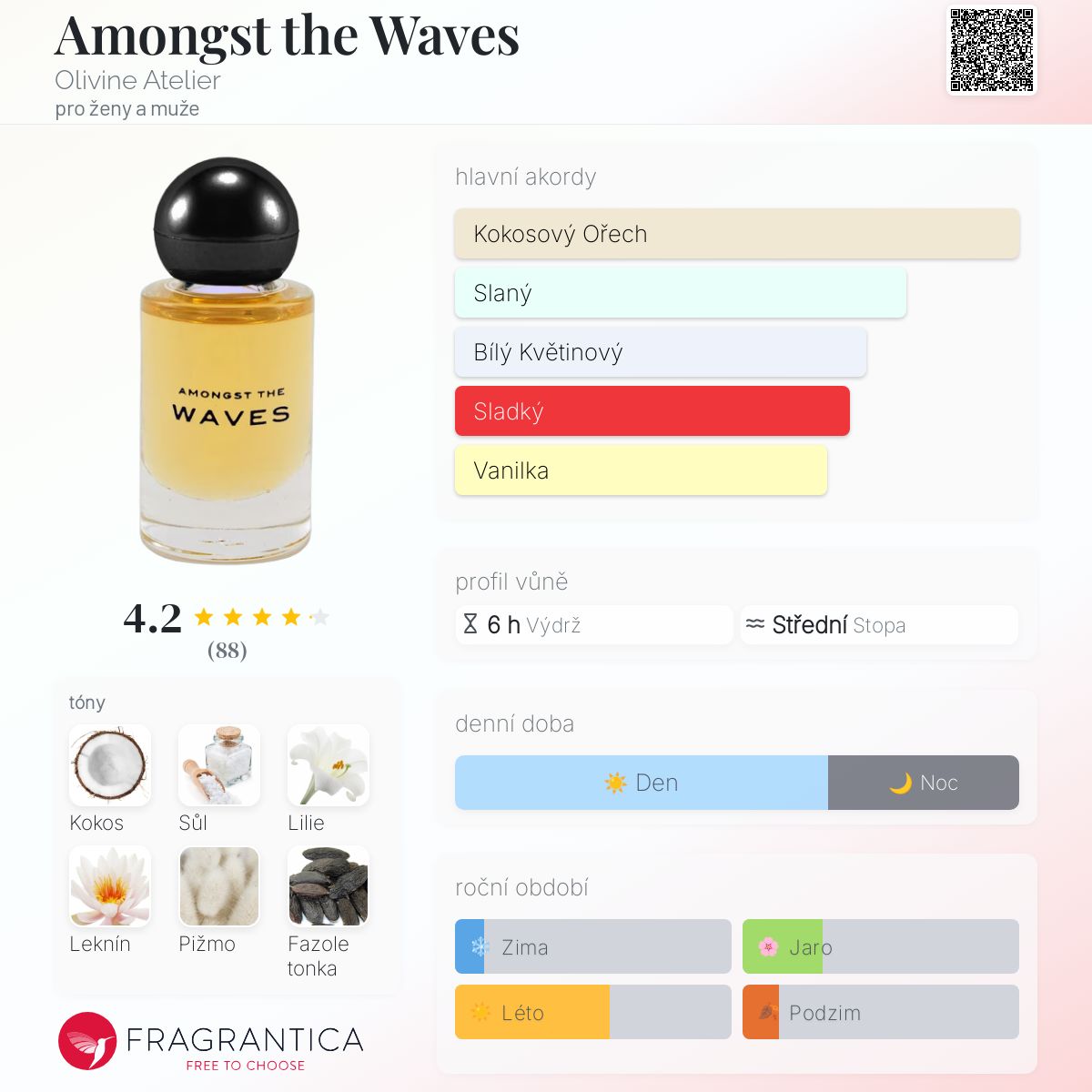 Amongst the Waves podle Olivine Atelier je Aromatic Aquatic vůně pro ženy a muže. Amongst the Waves byl/a uveden/a v roce 2015. Vrchní tóny jsou Kokos a Mořská sůl; střední tóny jsouLilie, Tygří lilie a Leknín ; základní tóny jsou Pižmo, Fazole tonka a Santalové dřevo.