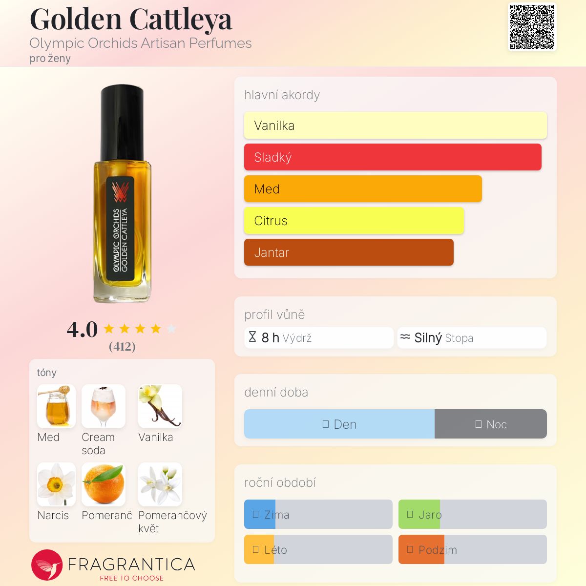 Golden Cattleya podle Olympic Orchids Artisan Perfumes je Orientální Floral vůně pro ženy. Golden Cattleya byl/a uveden/a v roce 2010. "Nosem" za touto vůní je Ellen Covey.