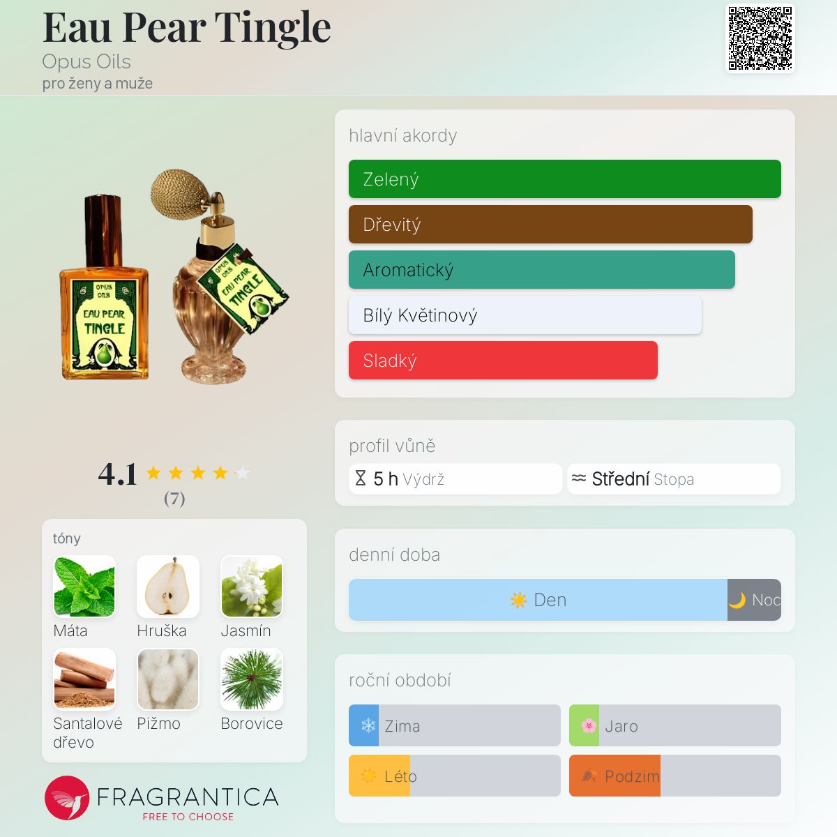 Eau Pear Tingle podle Opus Oils je Floral Fruity vůně pro ženy a muže. Eau Pear Tingle byl/a uveden/a v roce 2011. "Nosem" za touto vůní je Kedra Hart.