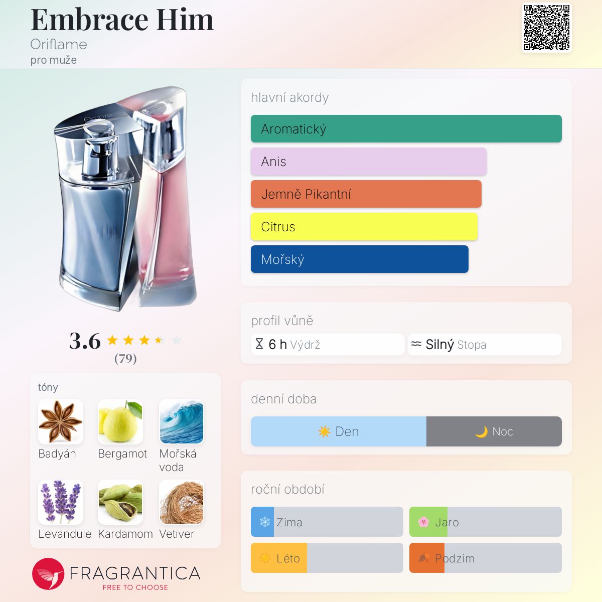 Embrace Him podle Oriflame je Woody Aromatic vůně pro muže. Embrace Him byl/a uveden/a v roce 2010. "Nosem" za touto vůní je Bernard Ellena.