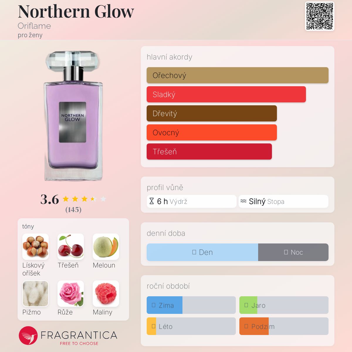 Northern Glow podle Oriflame je Floral vůně pro ženy. Northern Glow byl/a uveden/a v roce 2017. Vrchní tóny jsou Třešeň, Meloun a Maliny; střední tóny jsouČervená růže, Pomerančový květ a Pivoňka ; základní tóny jsou Lískový oříšek, Pižmo a Jantar (ambra).