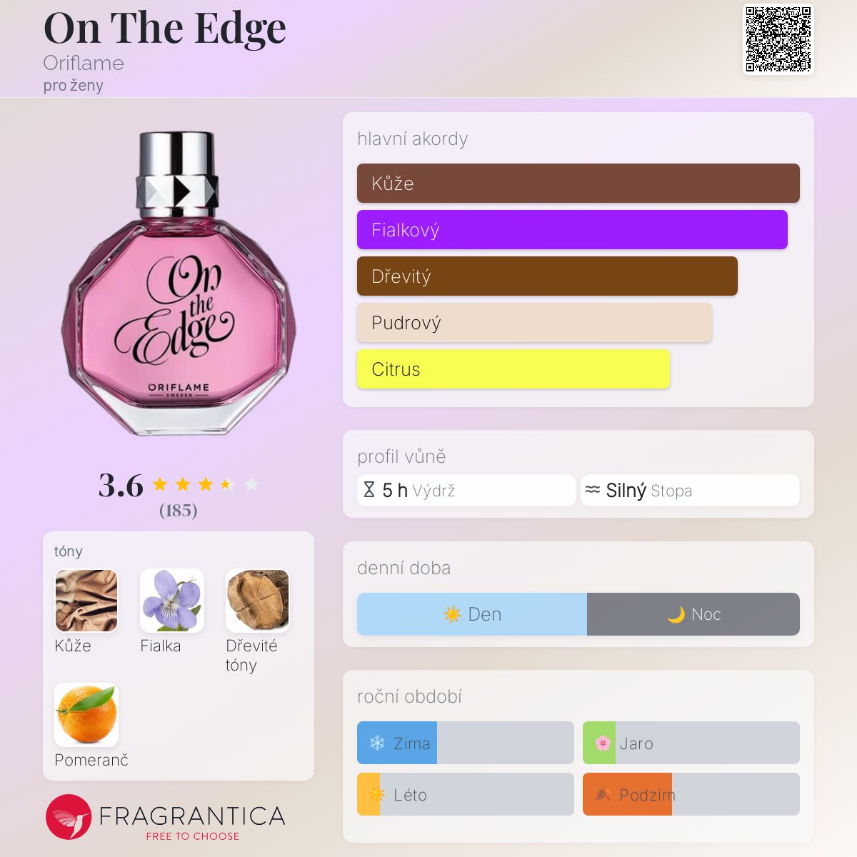 On The Edge podle Oriflame je Orientální Woody vůně pro ženy. On The Edge byl/a uveden/a v roce 2018. On The Edge byl/a vytvořen/a Nicolas Beaulieu a Nelly Hachem-Ruiz.