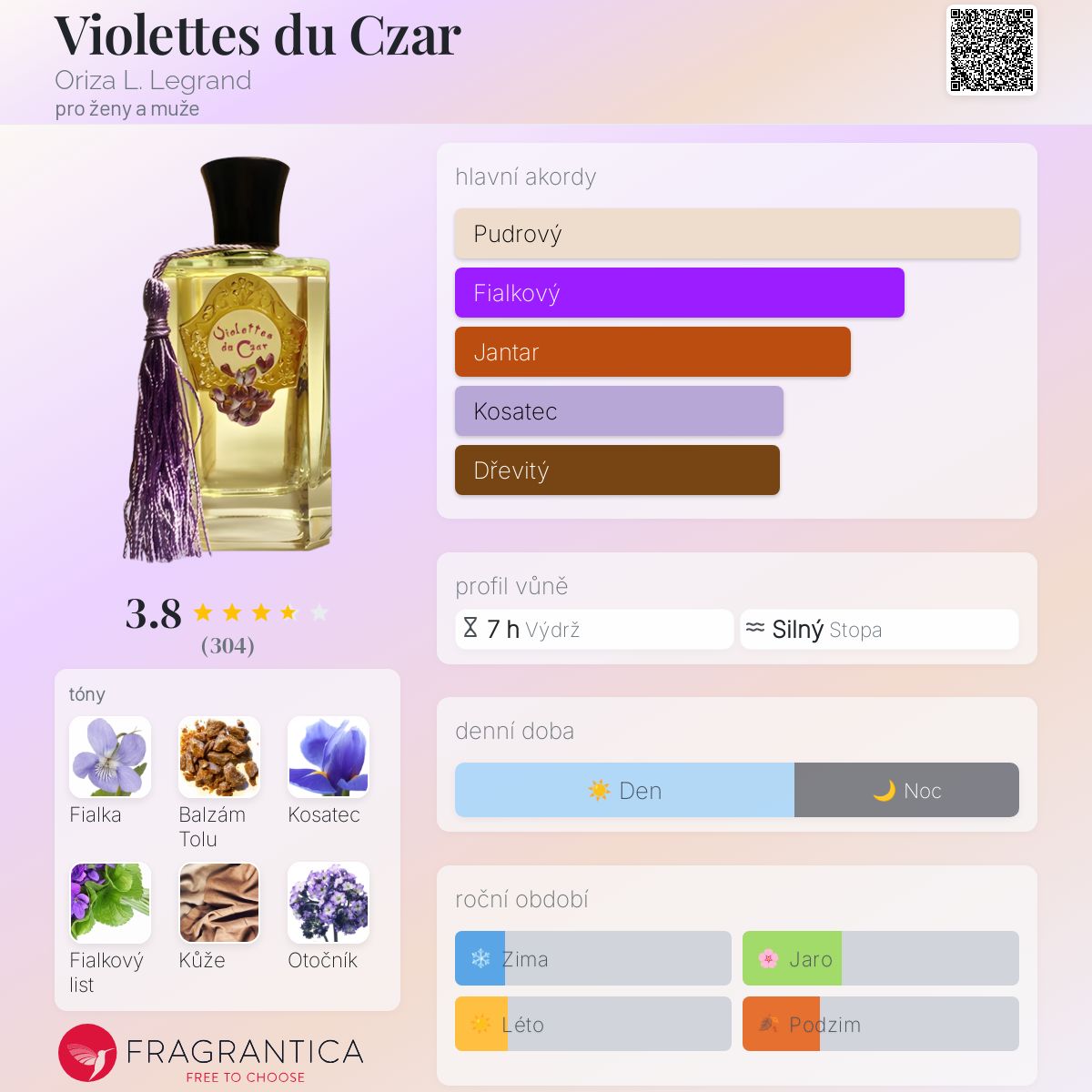 Violettes du Czar podle Oriza L. Legrand je Orientální Floral vůně pro ženy a muže. Violettes du Czar byl/a uveden/a v roce 2014. "Nosem" za touto vůní je Hugo Lambert.