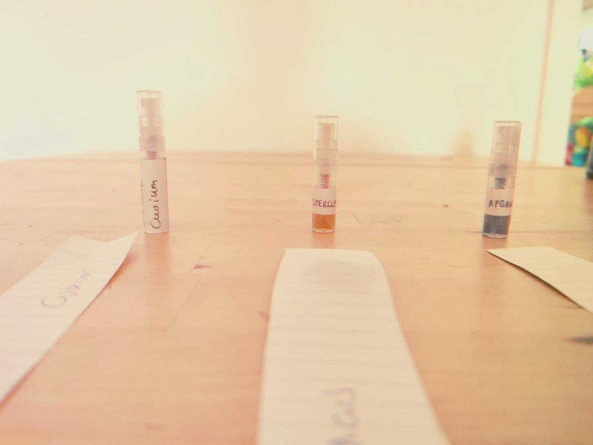 Stercus navzdory svému názvu nechutná po výkalech, když už, tak má velmi silnou vůni sena a stodoly, ale jen na začátku, s velmi teplým úvodem. Vysychání je jantarově zbarvené a obohacené o živočišné tóny, snad Castoreo? A směs macerovaných dřevin smíchaných dohromady. Fekální vůně tedy mizí okamžitě po prvních 10 minutách. Zbytek je podmanivá mužná vůně, podle mého skromného názoru velmi smyslná a živočišná, což na muži nikdy neuškodí. Vůně má obrovské trvání a dobrou projekci.