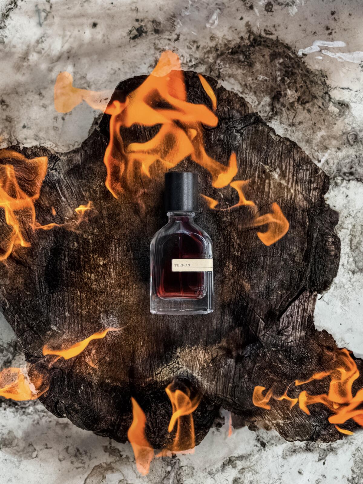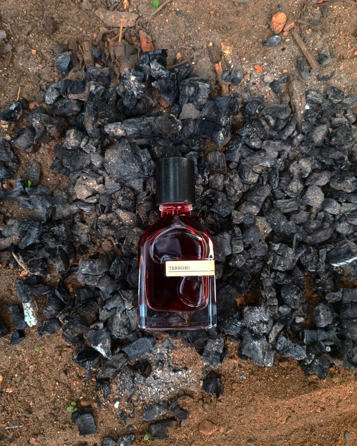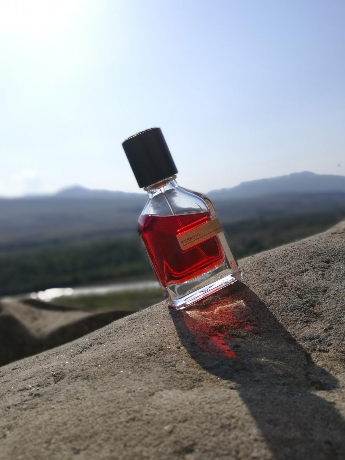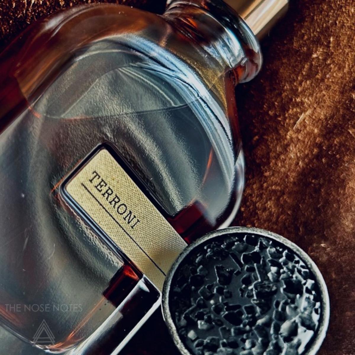 Terroni, inspirovaná horou Vesuv vzdálenou 9 km od Neapole, se otevírá charakteristickým tónem kouřového dřeva, zemitým, ambrovým, velmi ostrým; tónem, který bych popsala jako něco mezi dřevěným uhlím, sladkým kadidlem, a jakmile odejde, začne také ustupovat kouřovému, hustému až slanému tónu, který mi přišel velmi podobný tónu použitému ve Vi Et Armis a Iron Duke de Beaufort a připomíná mi střelný prach.