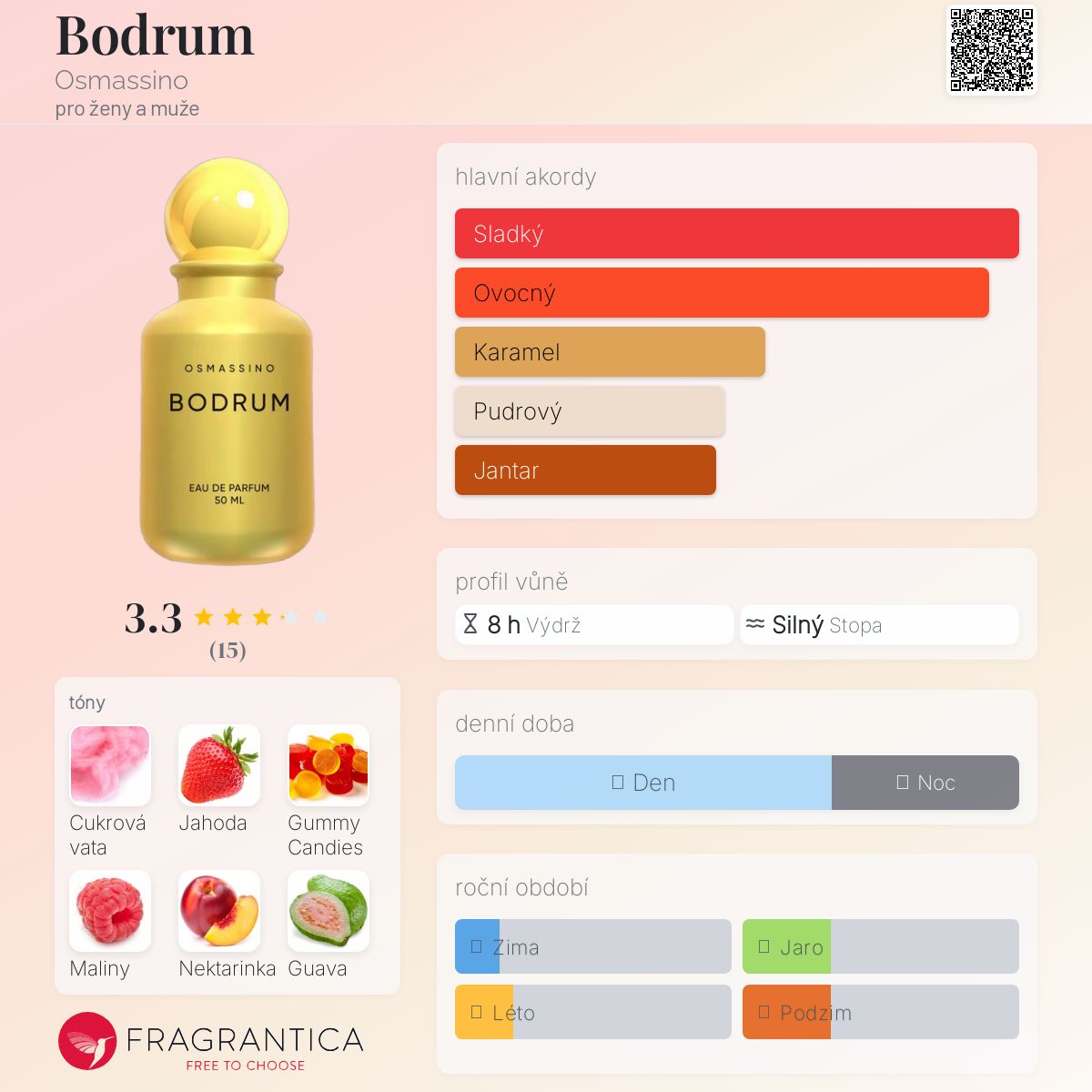 Bodrum podle Osmassino je Floral Fruity Gourmand vůně pro ženy a muže. Toto je nová vůně. Bodrum byl/a uveden/a v roce 2025.