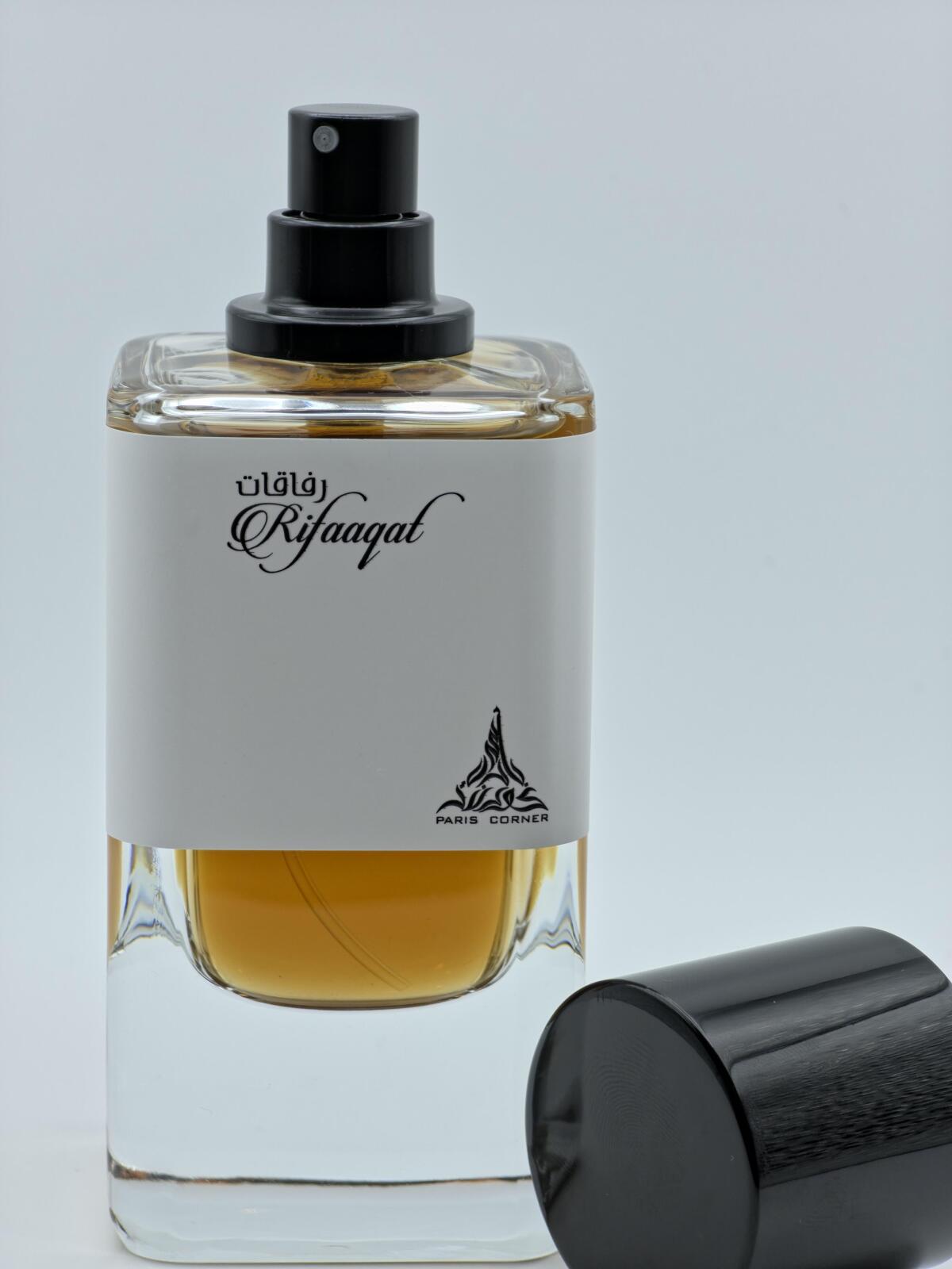 Rifaaqat podle PARIS CORNER je vůně pro ženy a muže. Rifaaqat byl/a uveden/a v roce 2023. Vrchní tóny jsou Černý pepř, Elimi a Růžový pepř; střední tóny jsouOlibanum a Šafrán ; základní tóny jsou Vanilka a Cedr.