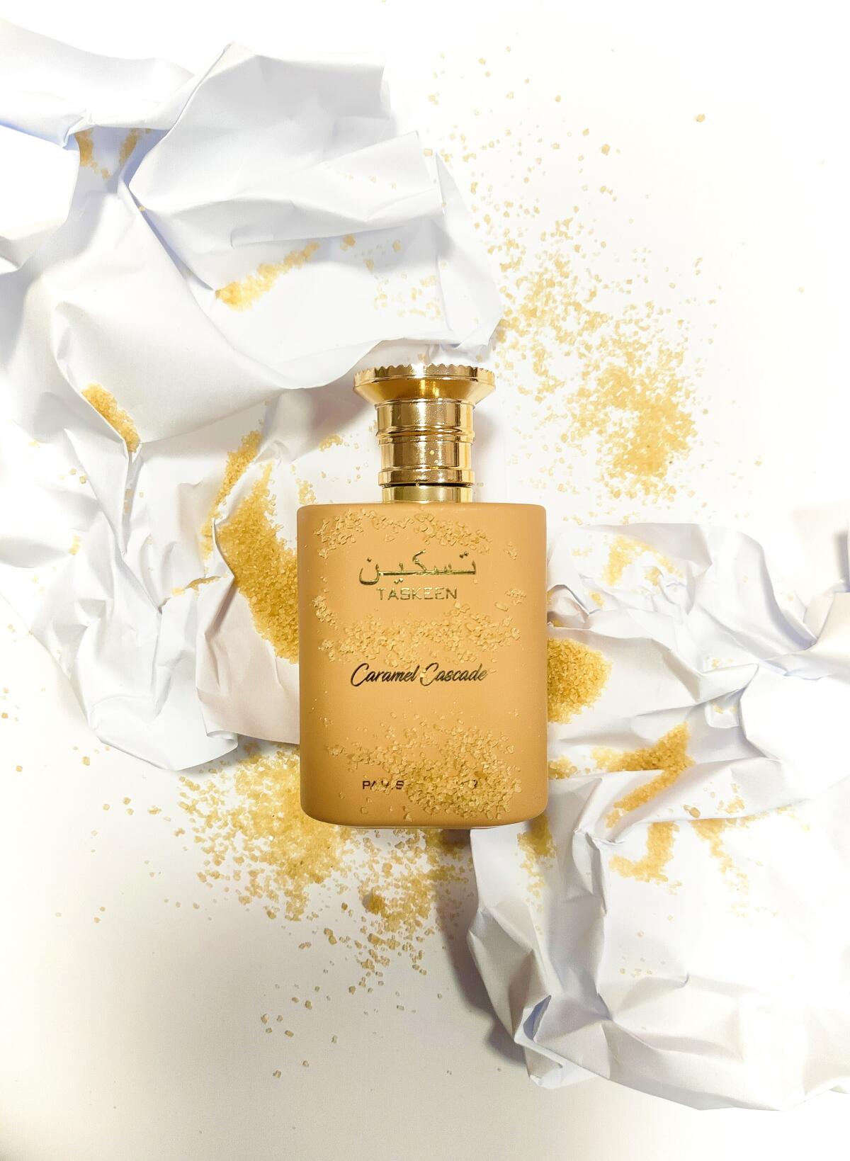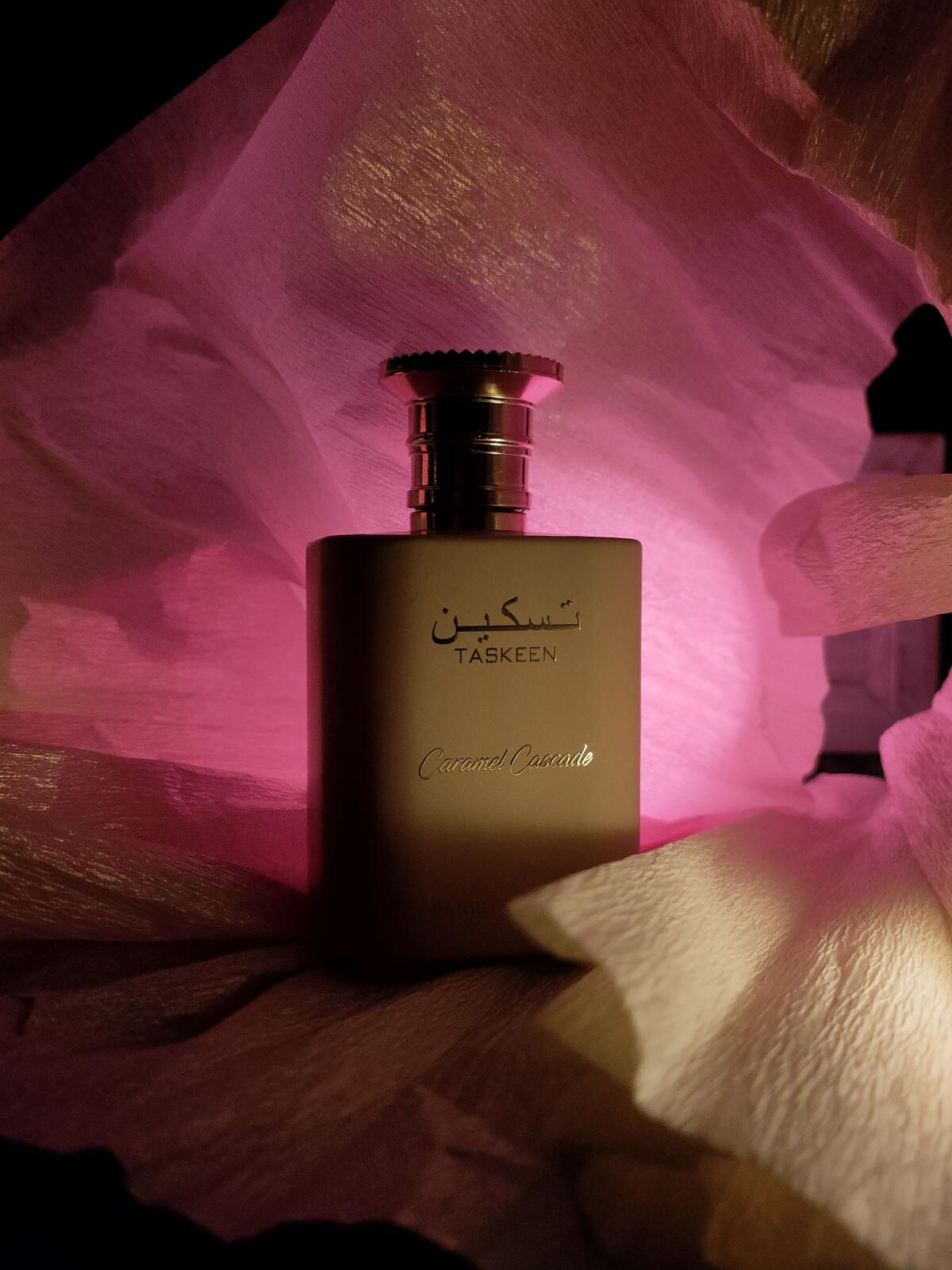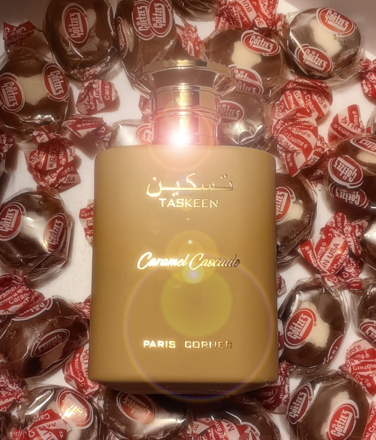 Taskeen Caramel Cascade podle PARIS CORNER je Floral Fruity Gourmand vůně pro ženy a muže. Toto je nová vůně. Taskeen Caramel Cascade byl/a uveden/a v roce 2024. Vrchní tóny jsou Karamel a Mléko; střední tóny jsouFazole tonka a Med ; základní tóny jsou Vanilka a Bílé pižmo.