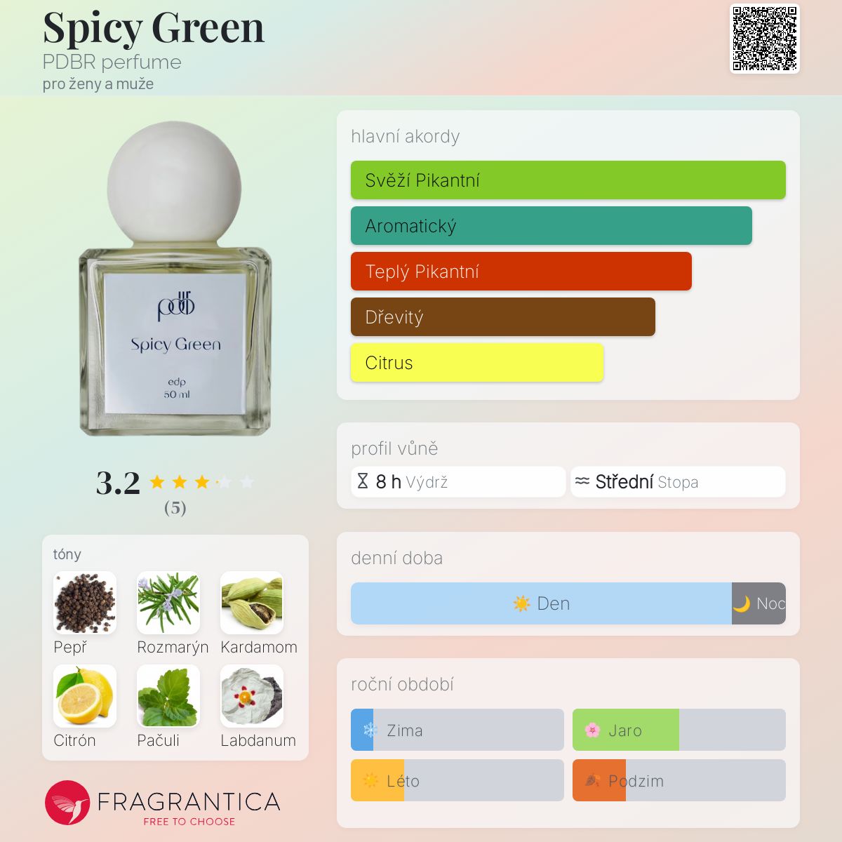 Spicy Green podle PDBR perfume je Aromatic Spicy vůně pro ženy a muže. Toto je nová vůně. Spicy Green byl/a uveden/a v roce 2024. "Nosem" za touto vůní je Elnara Podberezskaya.