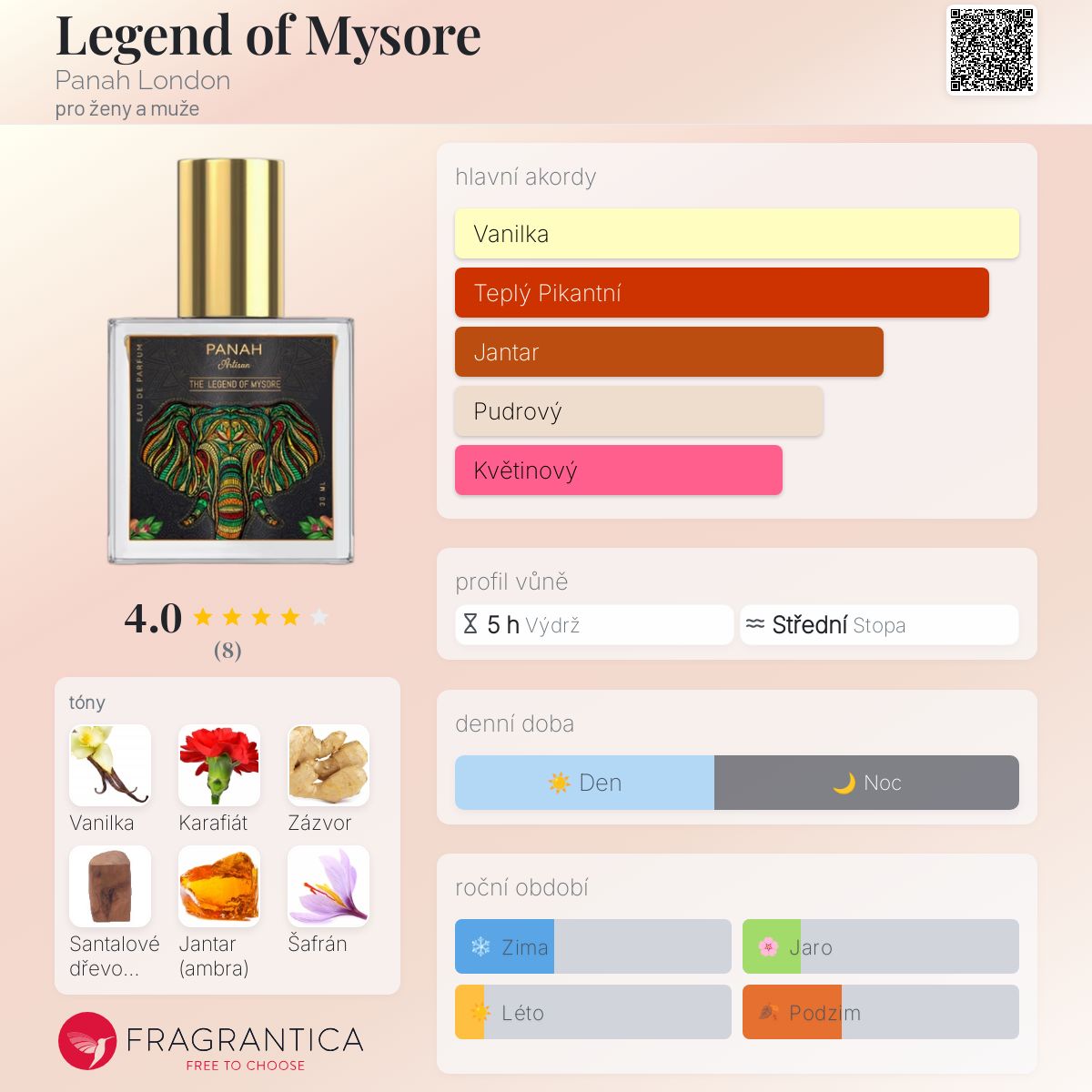 Legend of Mysore podle Panah London je vůně pro ženy a muže. Legend of Mysore byl/a uveden/a v roce 2023. "Nosem" za touto vůní je Kedra Hart.