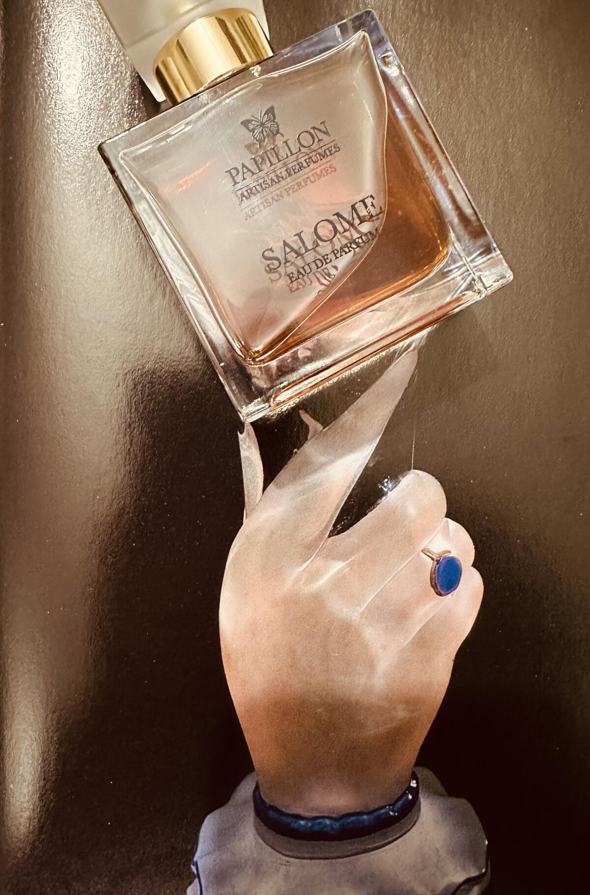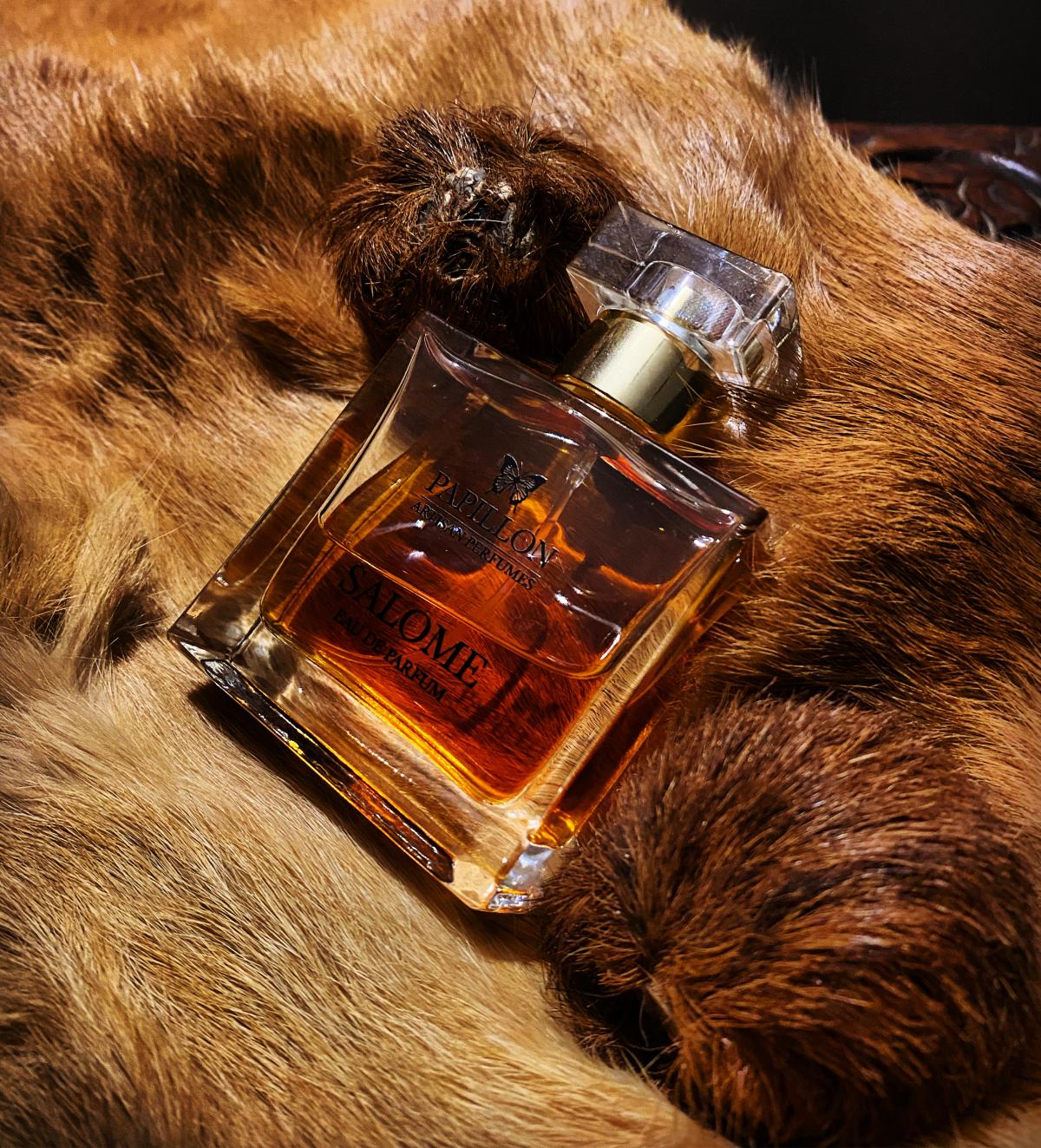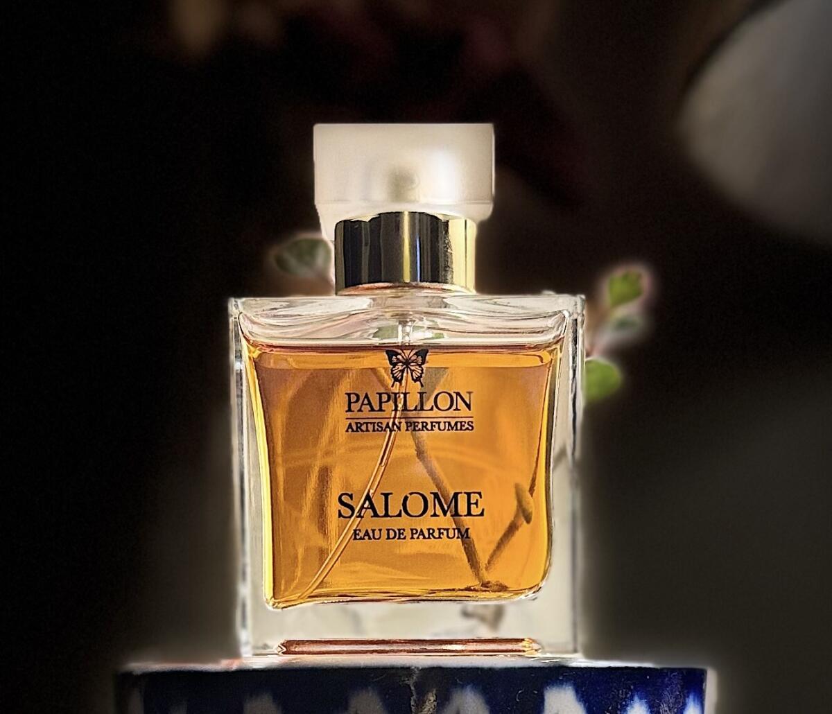 Salome podle Papillon Artisan Perfumes je Chypre Floral vůně pro ženy a muže. Salome byl/a uveden/a v roce 2015. Vrchní tóny jsou Hořký pomeranč a Bergamot; střední tóny jsouDaman, Jasmín, Karafiát, Tabák, Turecká růže a Pomerančový květ ; základní tóny jsou Kastoreum, Kmín, Dubový mech, Seno, Styrax, Pačuli, Bříza a Vanilka.