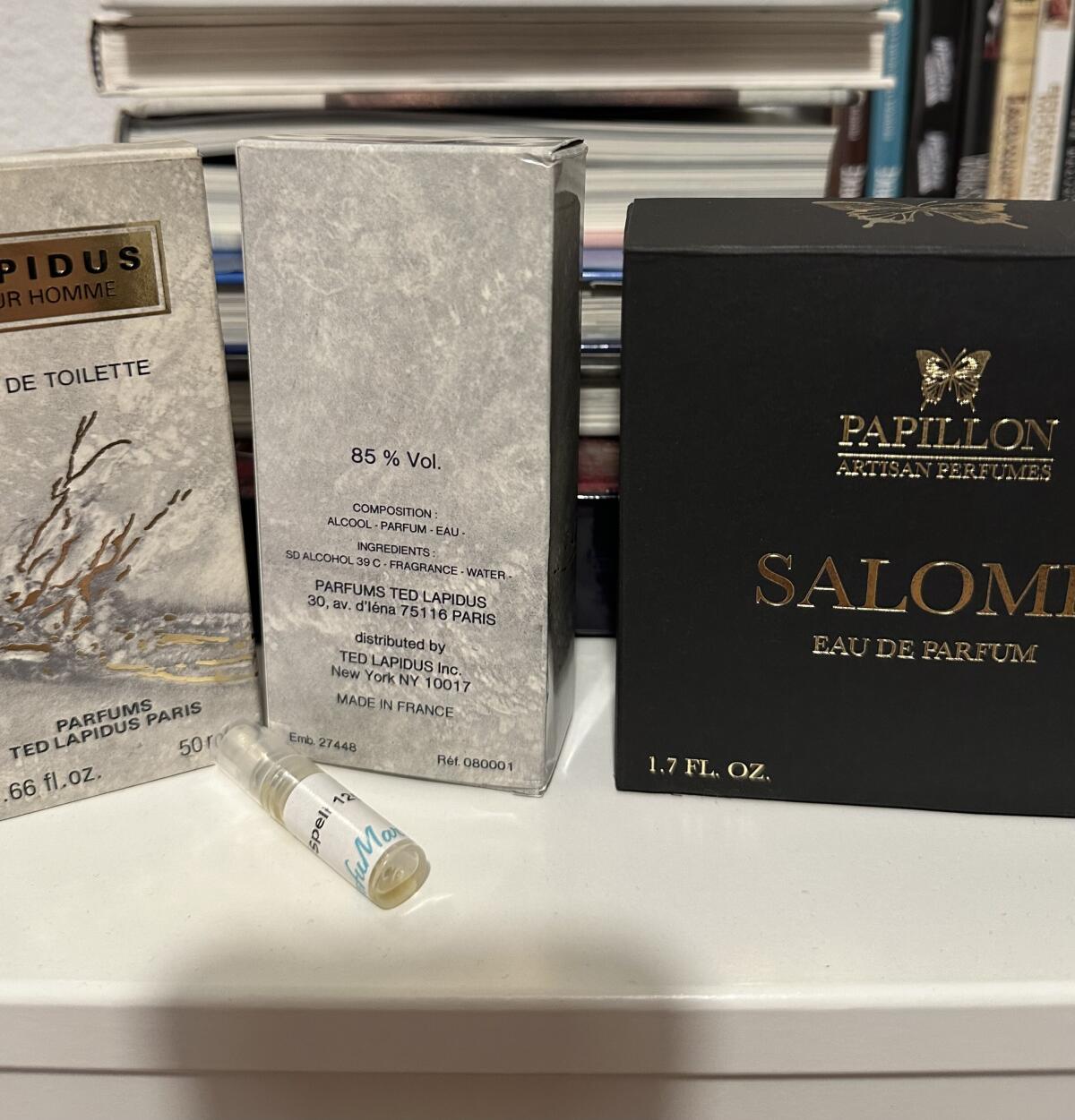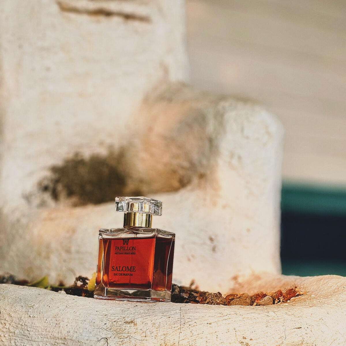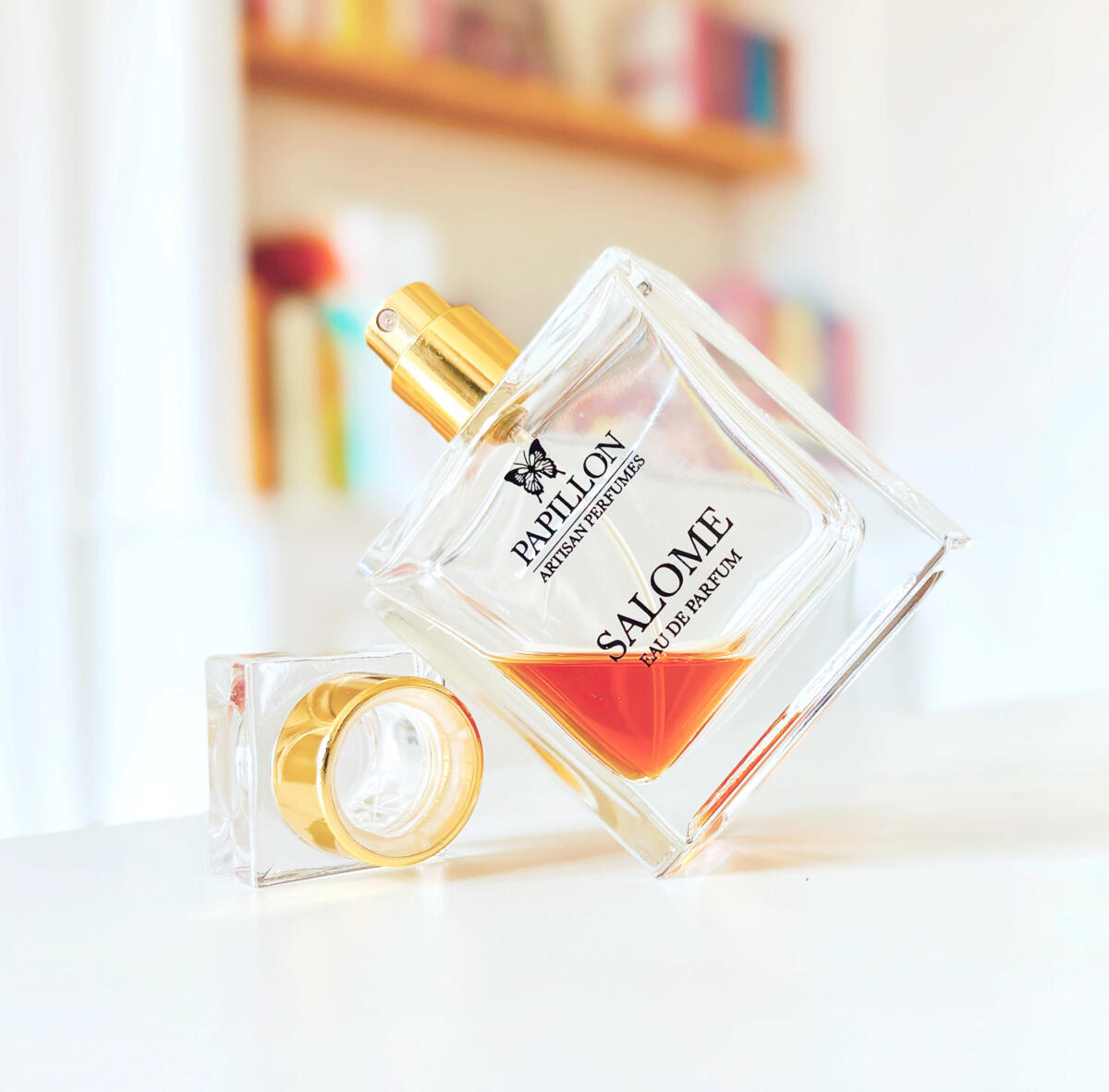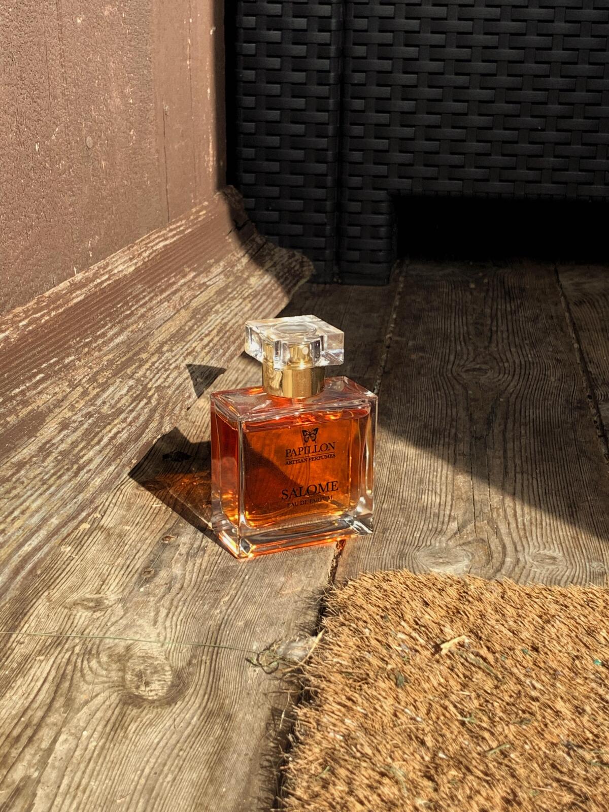 Salome podle Papillon Artisan Perfumes je Chypre Floral vůně pro ženy a muže. Salome byl/a uveden/a v roce 2015. Vrchní tóny jsou Hořký pomeranč a Bergamot; střední tóny jsouDaman, Jasmín, Karafiát, Tabák, Turecká růže a Pomerančový květ ; základní tóny jsou Kastoreum, Kmín, Dubový mech, Seno, Styrax, Pačuli, Bříza a Vanilka.