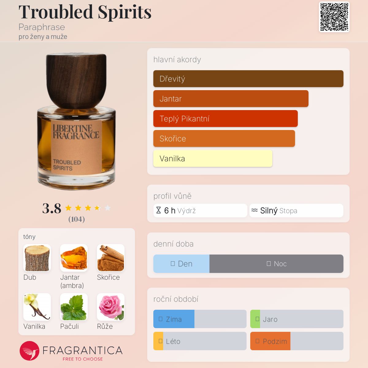 Troubled Spirits podle Paraphrase je Floral Woody Musk vůně pro ženy a muže. Troubled Spirits byl/a uveden/a v roce 2015. "Nosem" za touto vůní je Joshua Smith.