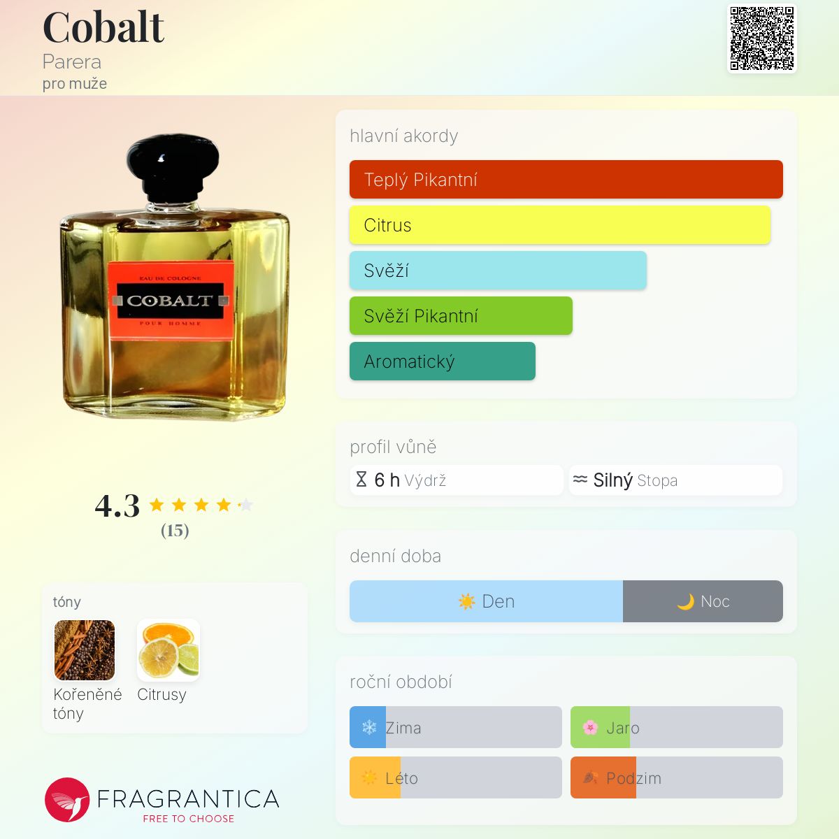 Hodnocení parfému 4.27 z 5 s 15 hlasy