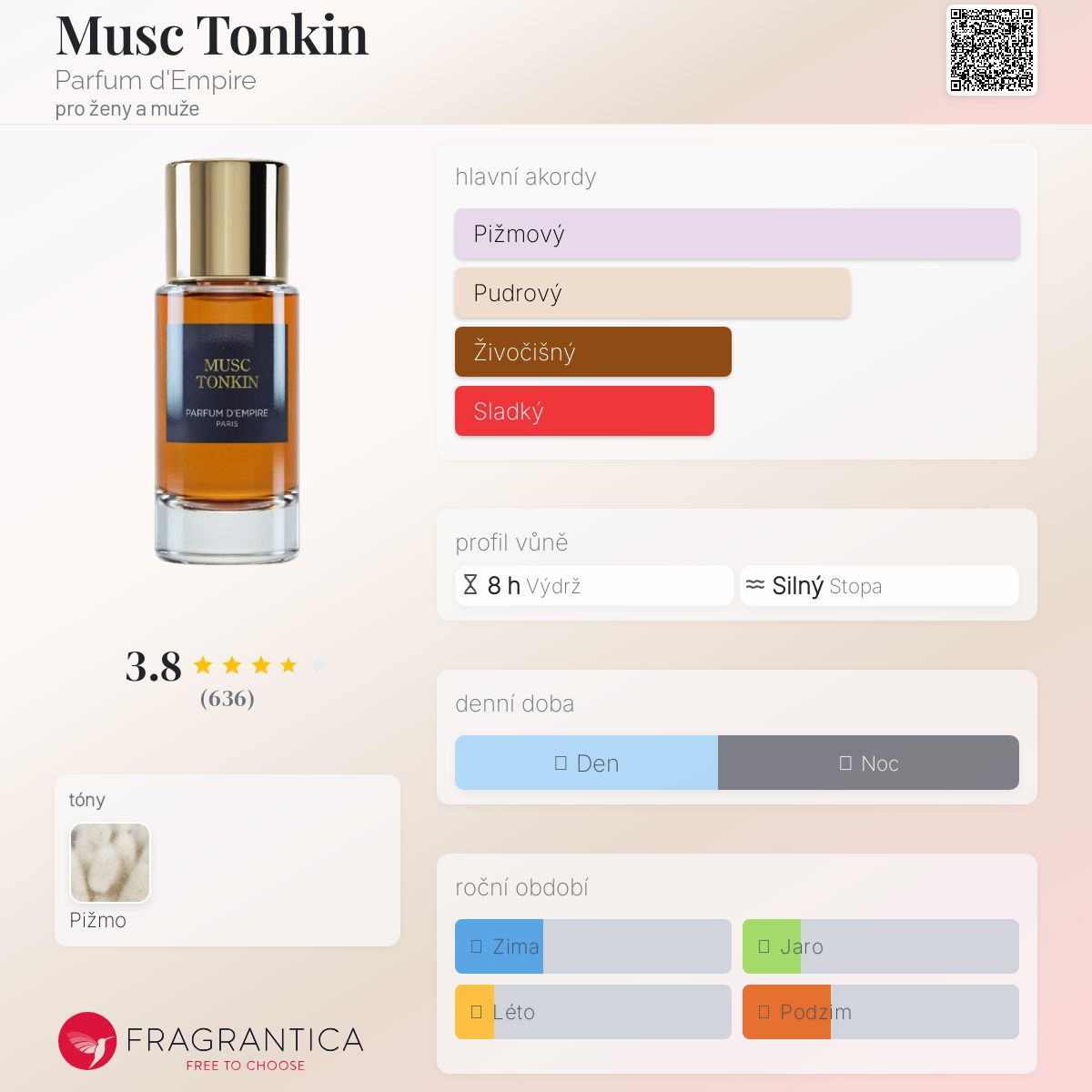 Musc Tonkin podle Parfum d'Empire je Chypre Floral vůně pro ženy a muže. Musc Tonkin byl/a uveden/a v roce 2012. "Nosem" za touto vůní je Marc-Antoine Corticchiato.
