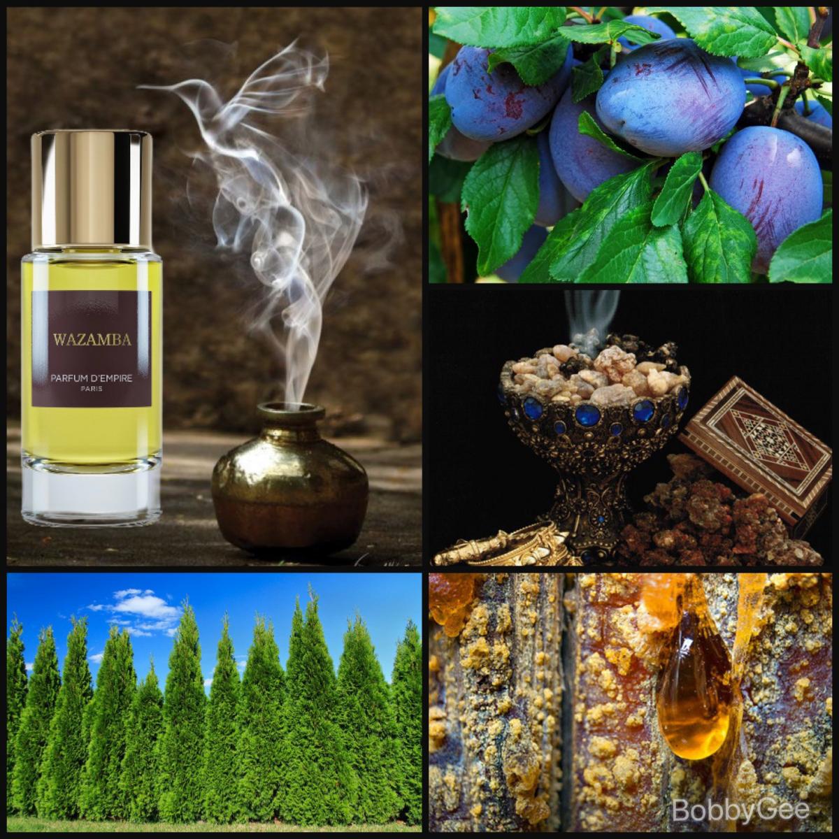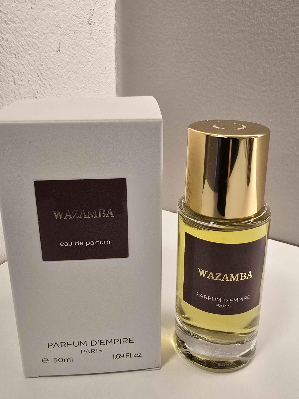 Wazamba podle Parfum d'Empire je Orientální vůně pro ženy a muže. Wazamba byl/a uveden/a v roce 2009. Vrchní tóny jsou Kadidlo, Cypřiš, Červené jablko a Aldehydy; střední tóny jsouMyrha, Olibanum, Labdanum a Švestka ; základní tóny jsou Kadidlo, Pryskyřice, Opoponax, Santalové dřevo a Kapradina.