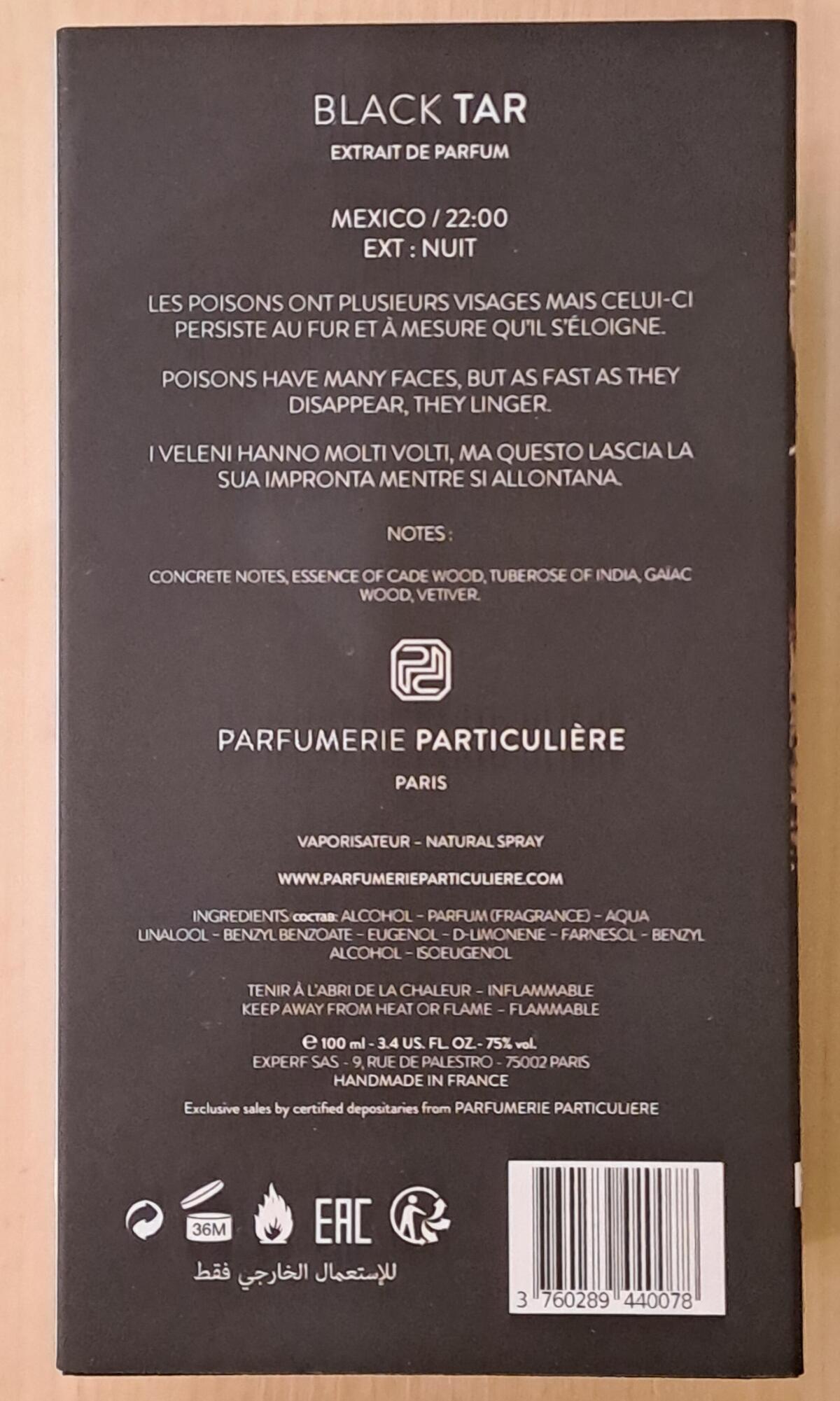 Black Tar podle Parfumerie Particulière je Orientální vůně pro ženy a muže. Black Tar byl/a uveden/a v roce 2016. Black Tar byl/a vytvořen/a Amelie Bourgeois a Anne-Sophie Behaghel.