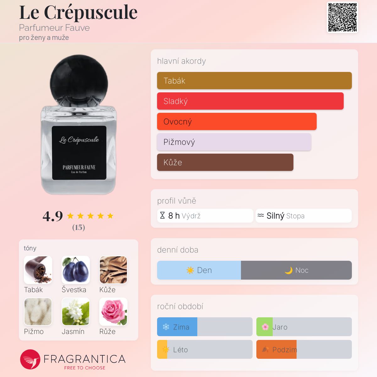 Le Crépuscule podle Parfumeur Fauve je Orientální Woody vůně pro ženy a muže. Toto je nová vůně. Le Crépuscule byl/a uveden/a v roce 2025. "Nosem" za touto vůní je Manon Arnaud.