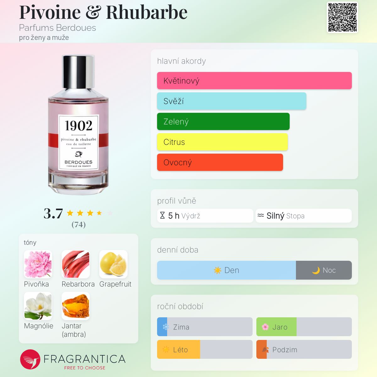 Pivoine & Rhubarbe podle Parfums Berdoues je Floral Fruity vůně pro ženy a muže. Pivoine & Rhubarbe byl/a uveden/a v roce 2017. Vrchní tóny jsou Rebarbora a Grapefruit; střední tóny jsouPivoňka a Magnólie ; základní tón je Jantar (ambra).