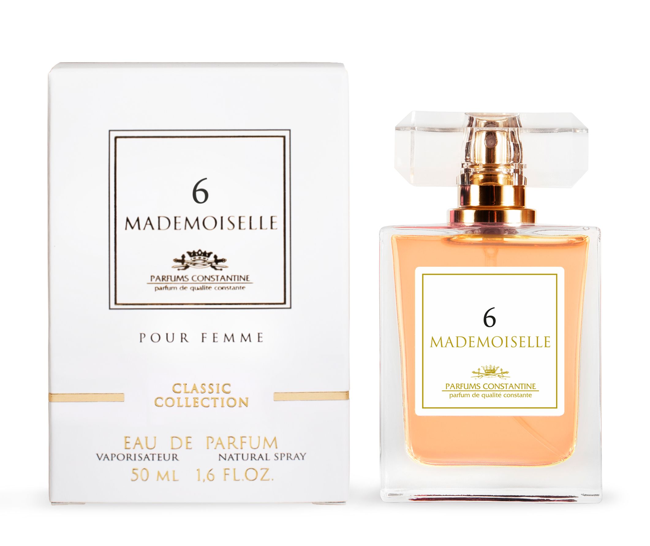 Mademoiselle No. 6 podle Parfums Constantine je Chypre Fruity vůně pro ženy. Mademoiselle No. 6 byl/a uveden/a v roce 2015. Vrchní tón je Černý rybíz ; střední tóny jsouKvětná růže, Vanilka, Ambroxan a Frézie ; základní tóny jsou Pačuli a Dřevité tóny.