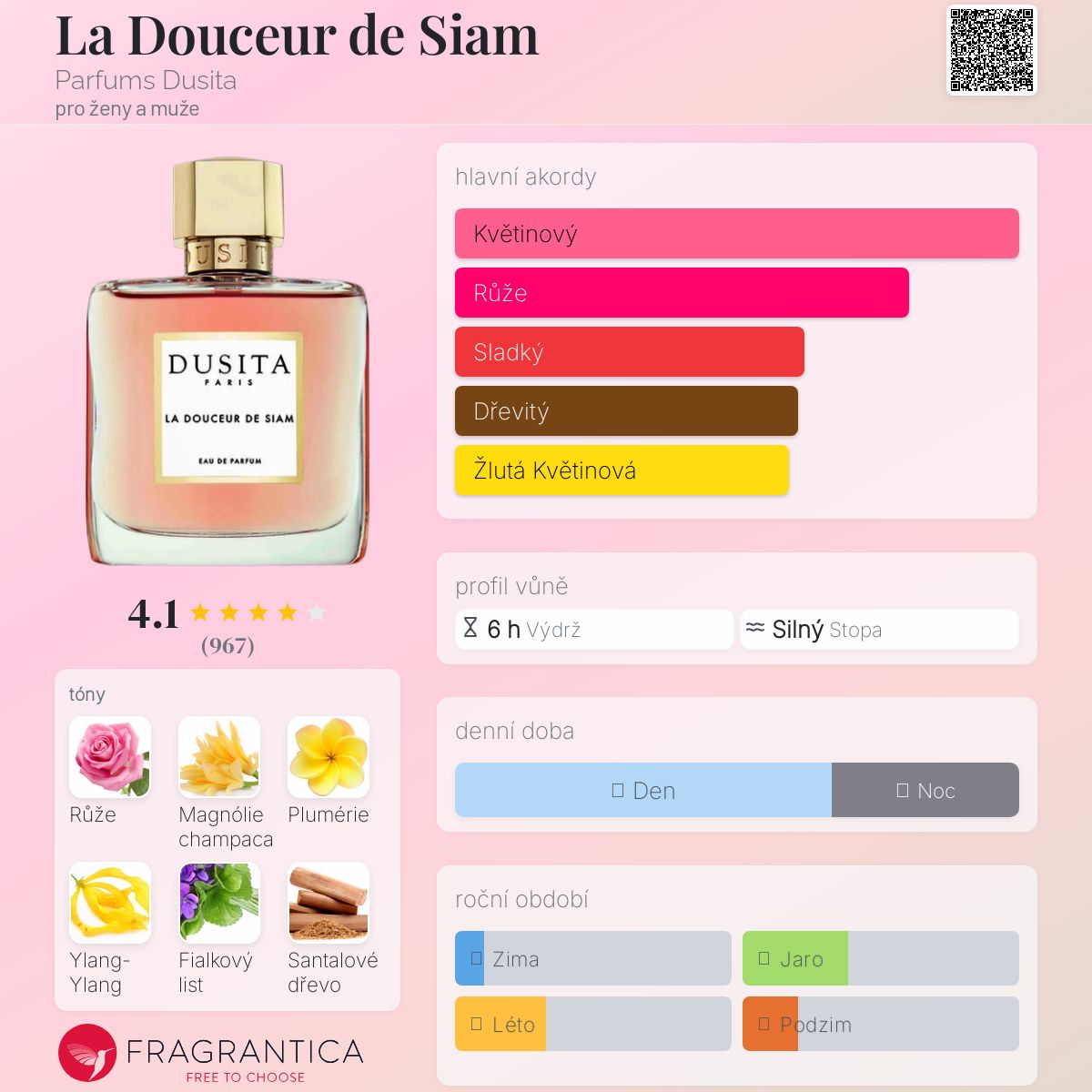 La Douceur de Siam podle Parfums Dusita je Orientální Floral vůně pro ženy a muže. La Douceur de Siam byl/a uveden/a v roce 2017. "Nosem" za touto vůní je Pissara Umavijani.