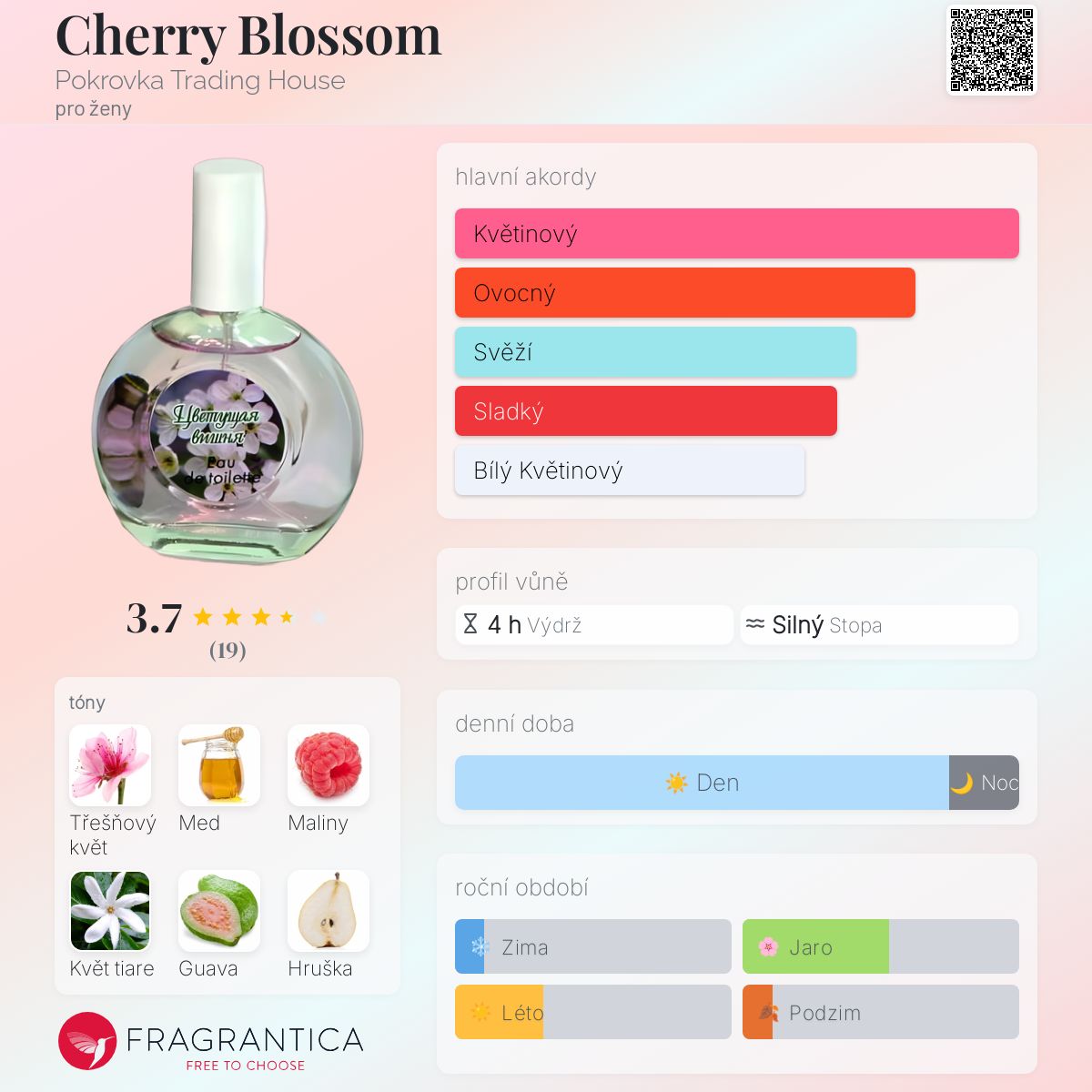 Cherry Blossom Цветущая Вишня podle Parfums Guy Alari je Floral vůně pro ženy. "Nosem" za touto vůní je Marina Nikitina. Vrchní tóny jsou Maliny, Guava a Hruška; střední tóny jsouTřešňový květ, Květ tiare, Lilie a Pomerančový květ ; základní tóny jsou Med, Pižmo a Pačuli.