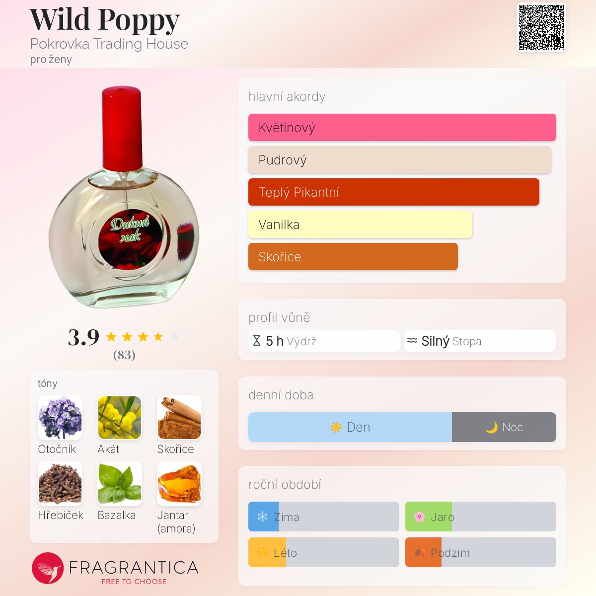 Wild Poppy Дикий Мак podle Parfums Guy Alari je Floral vůně pro ženy. "Nosem" za touto vůní je Marina Nikitina. Vrchní tóny jsou Hřebíček a Bazalka; střední tóny jsouOtočník, Akát, Skořice a Jasmín ; základní tóny jsou Jantar (ambra), Santalové dřevo a Pižmo.