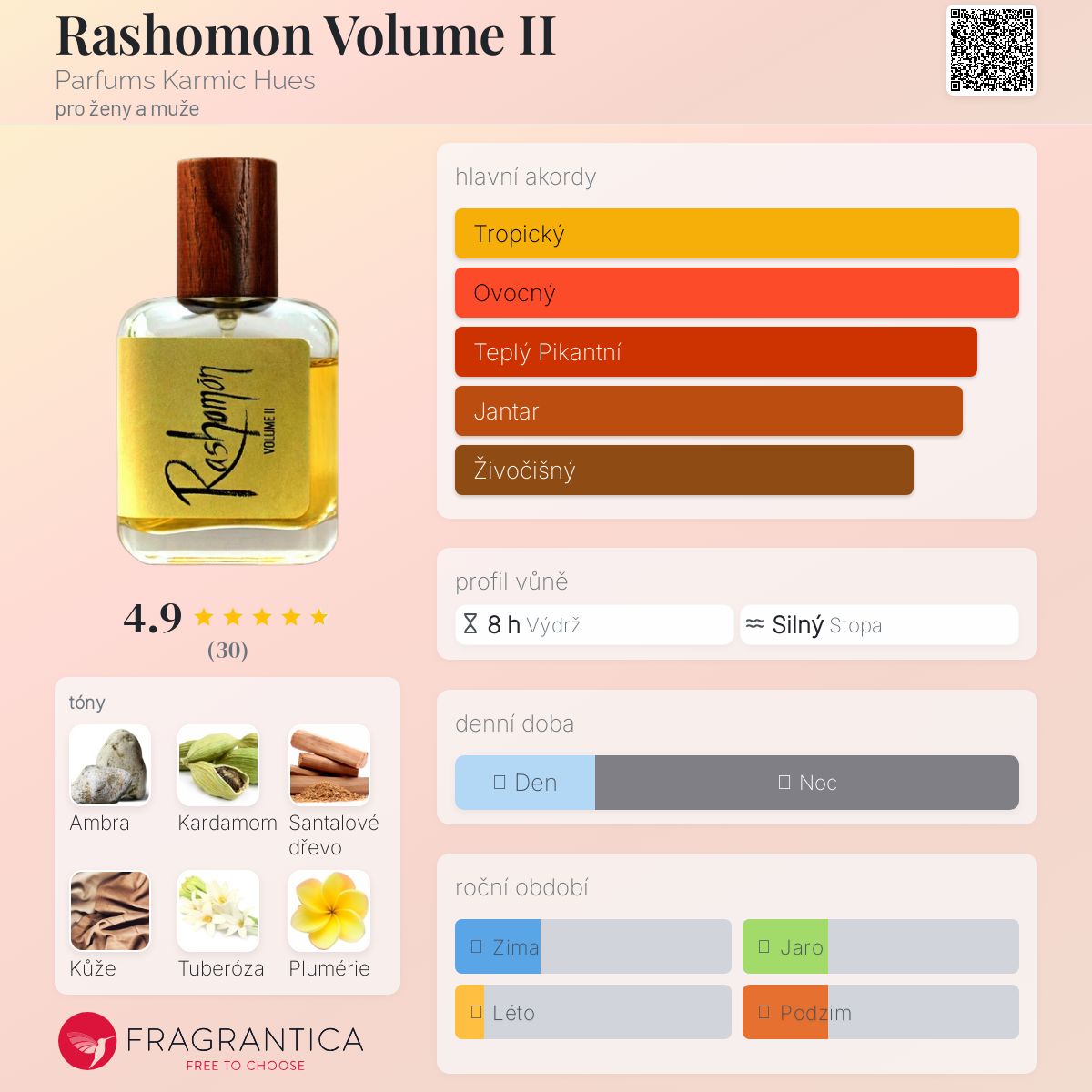 Rashomon Volume II podle Parfums Karmic Hues je Orientální Floral vůně pro ženy a muže. Rashomon Volume II byl/a uveden/a v roce 2022. "Nosem" za touto vůní je Srivathsa Subramanian Sivakumar.