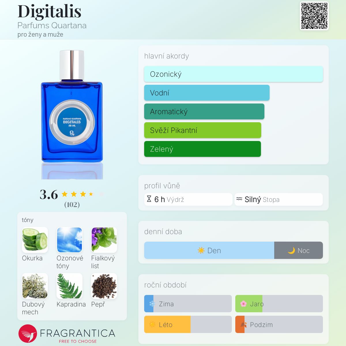 Digitalis podle Parfums Quartana je Aromatic Green vůně pro ženy a muže. Digitalis byl/a uveden/a v roce 2016. "Nosem" za touto vůní je David Apel.