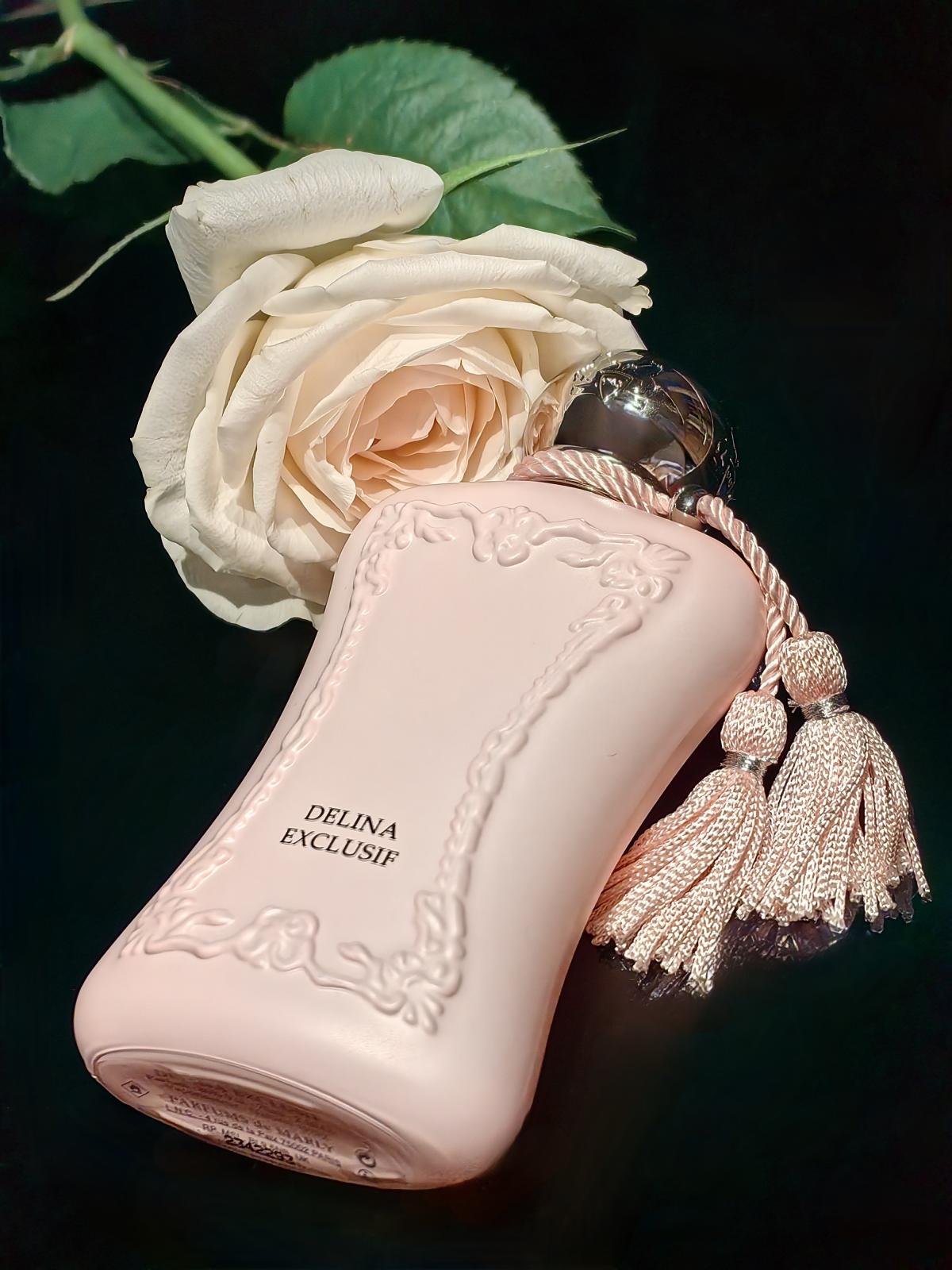 Delina Exclusif podle Parfums de Marly je Orientální vůně pro ženy. Delina Exclusif byl/a uveden/a v roce 2018. "Nosem" za touto vůní je Quentin Bisch. Vrchní tóny jsou Liči, Hruška, Bergamot, Grapefruit a Růžový pepř; střední tóny jsouTurecká růže, Agarové dřevo (oud) a Kadidlo ; základní tóny jsou Vanilka, Jantar (ambra), Dřevité tóny, Pižmo, Vetiver a Evernyl.